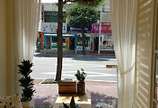 여수 학동 풍류가 챠르르 화이트 쉬폰커튼 설치(여수상가커튼,여수카페커튼)