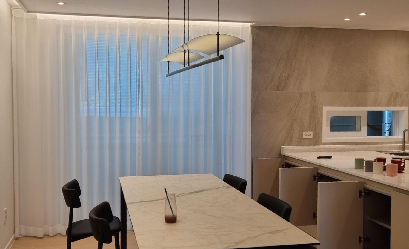 주방에는 도톰쉬폰보다 조금 더 가볍고 부드러운 쉬폰커튼입니다.