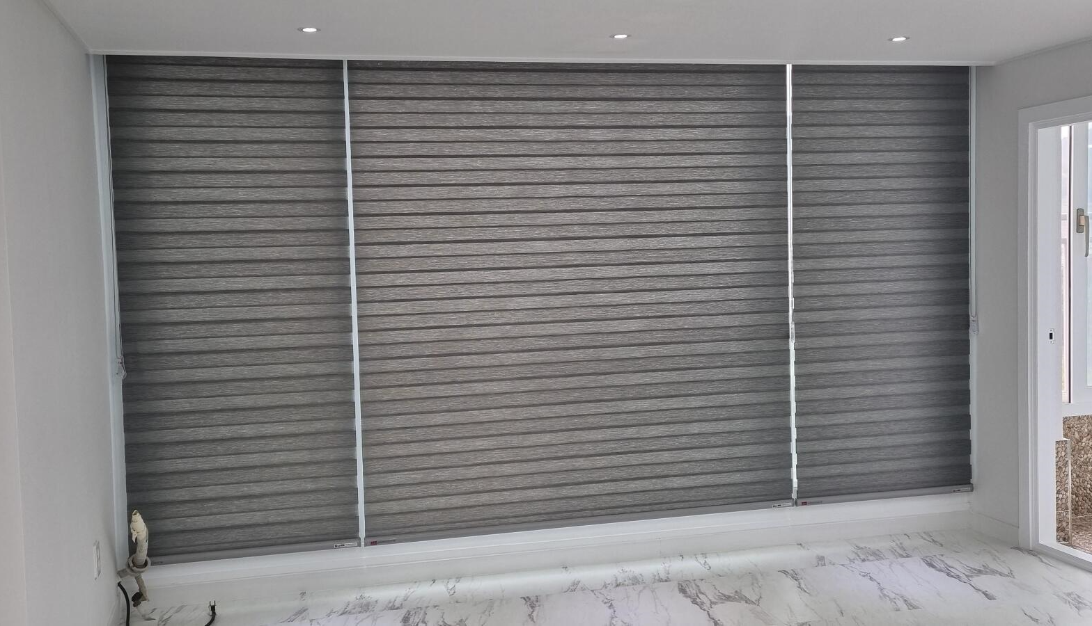 망사와 원단이 교차되는 콤비블라인드입니다.