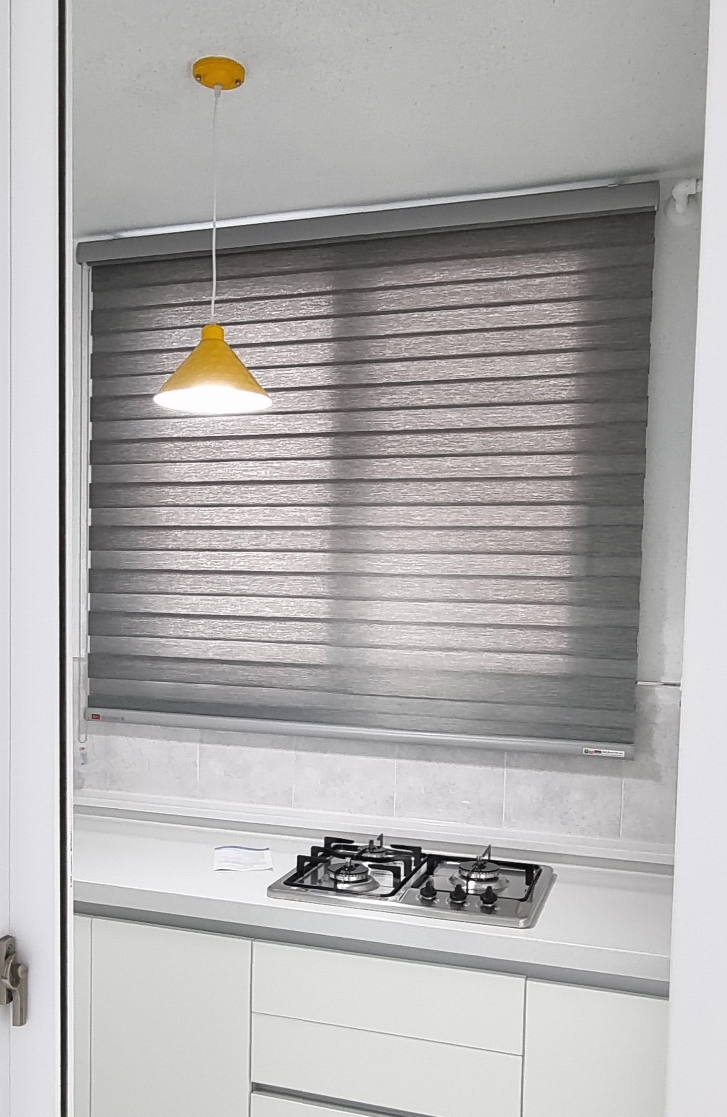 망사와 원단이 교차되는 콤비블라인드입니다.