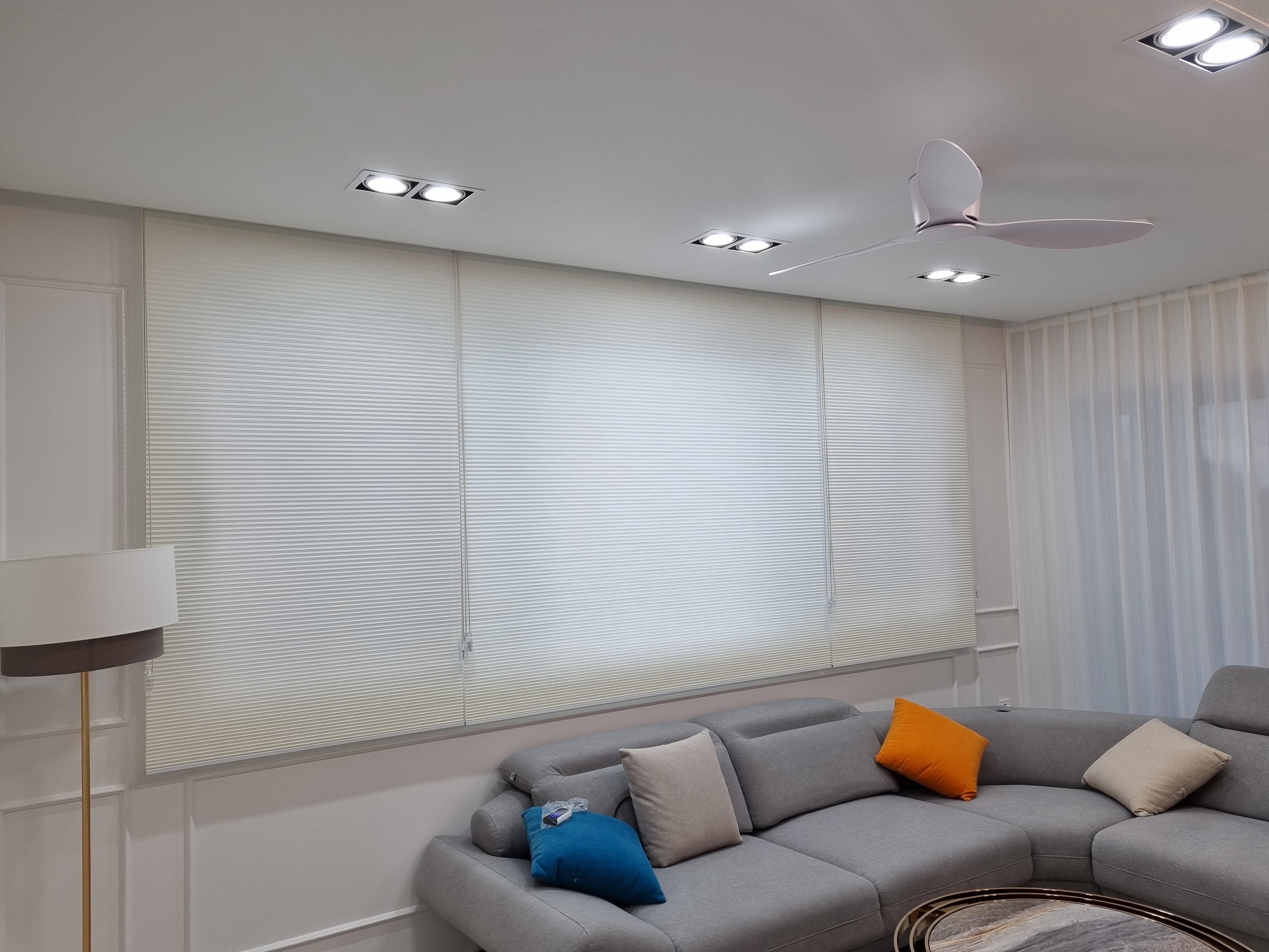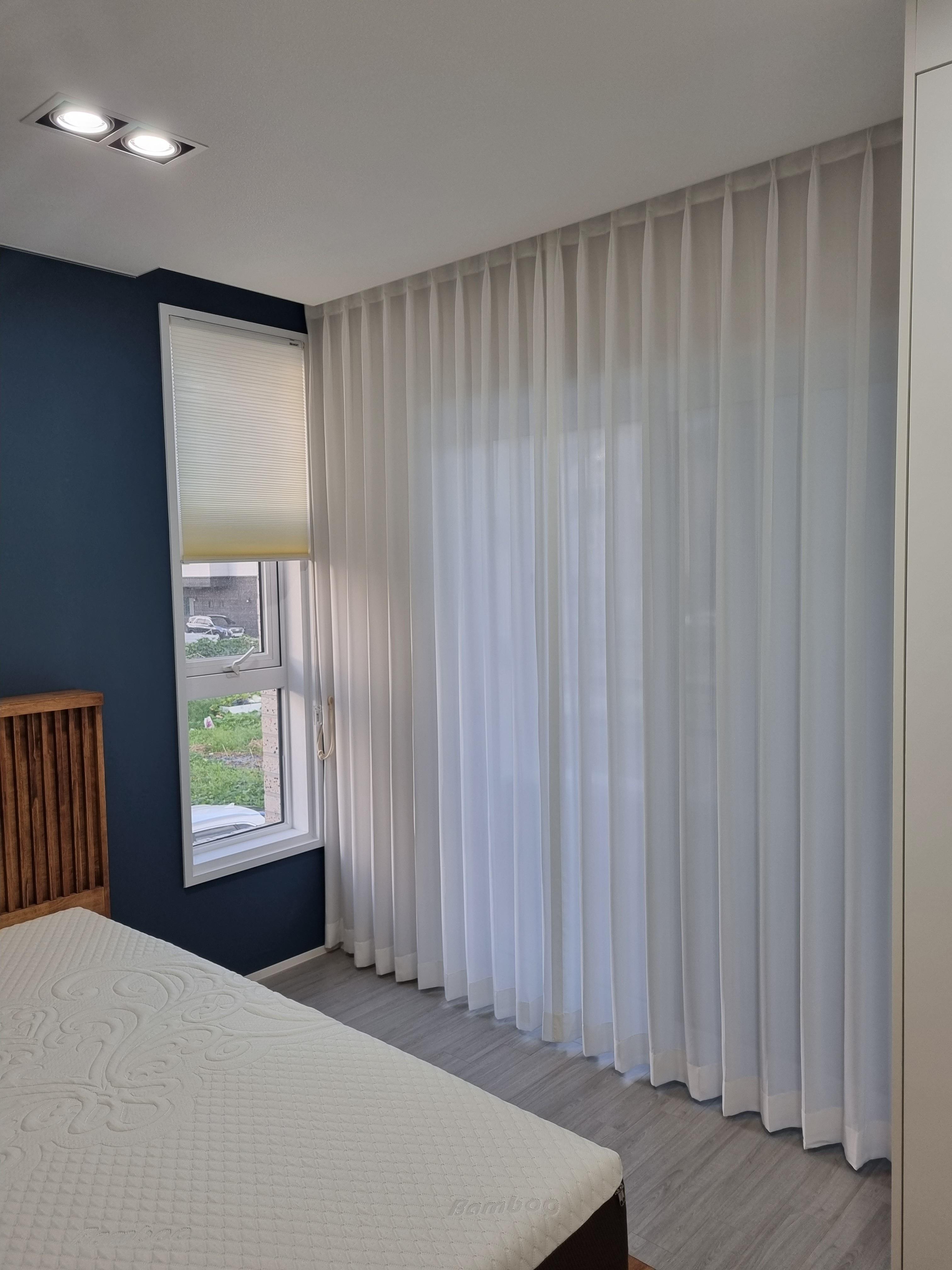 여수웅천주택 도톰헤비쉬폰커튼,허니콤블라인드(탑다운방식)설치했어요~(여수블라인드,여수커튼)