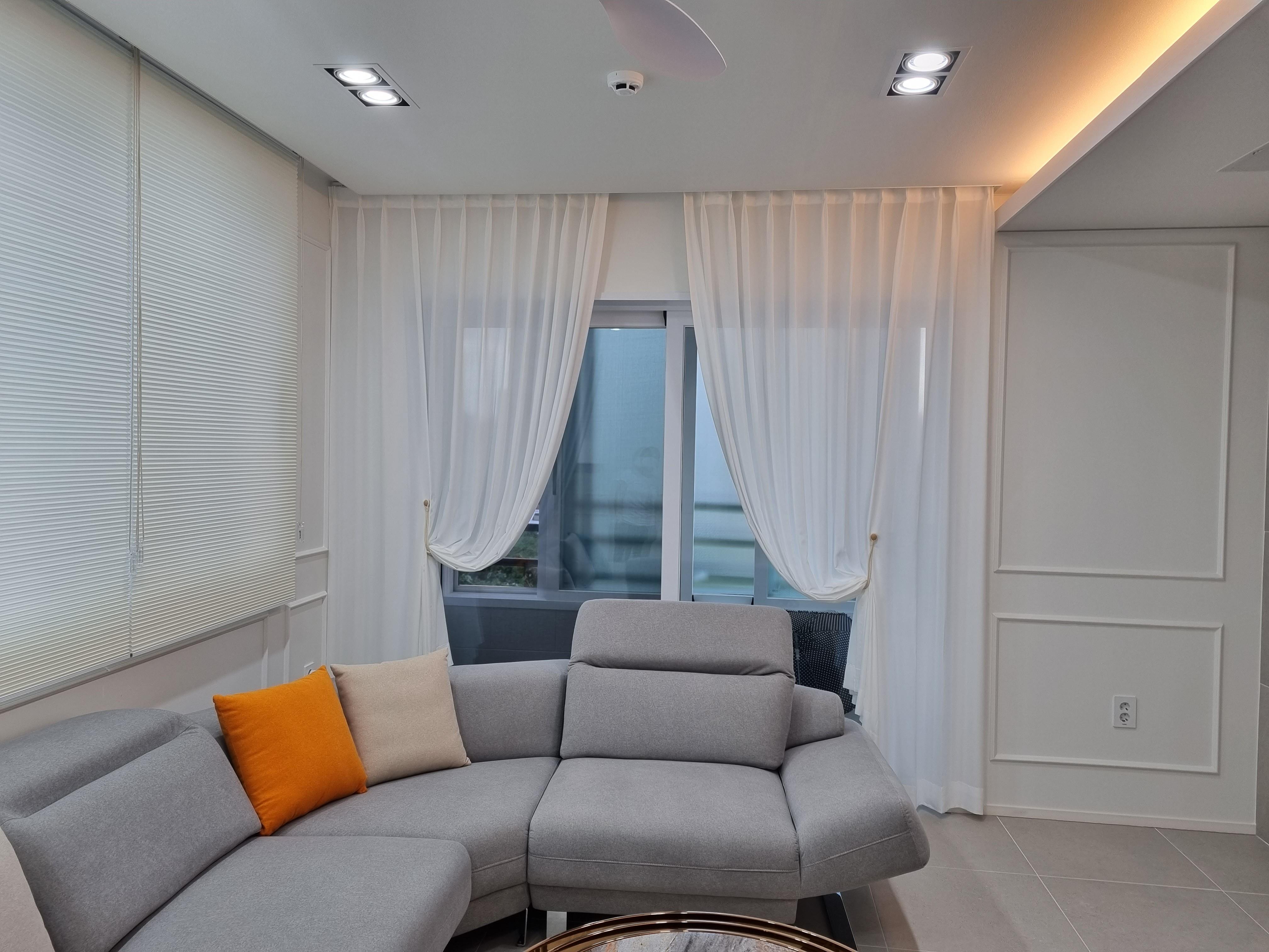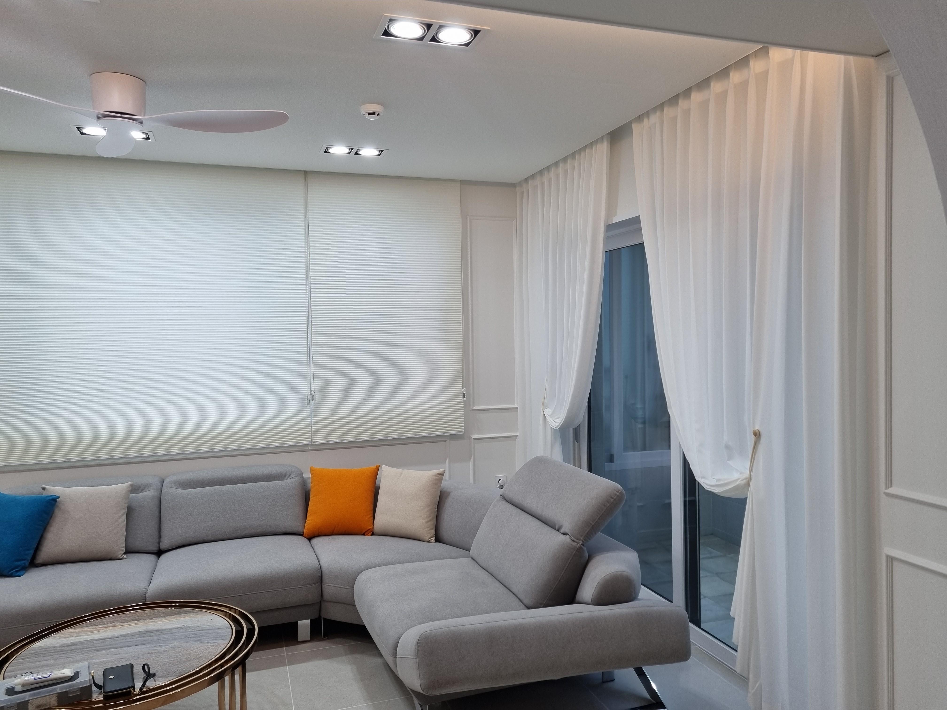 여수웅천주택 도톰헤비쉬폰커튼,허니콤블라인드(탑다운방식)설치했어요~(여수블라인드,여수커튼)