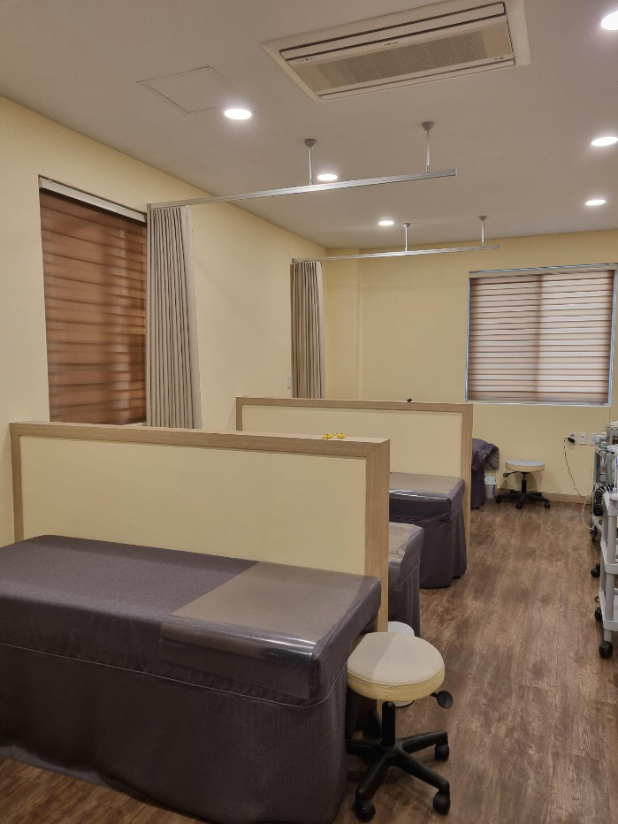 베이지계열의 커튼설치한 여수병원(의원)