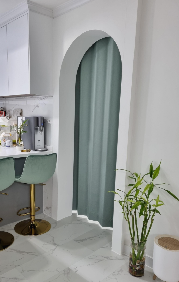 사진처럼 곡선형 창문에는 어떤 커튼을 할까?