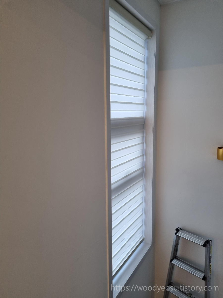 계단창은 콤비블라인드로 깔끔하게 시공해 드렸습니다.