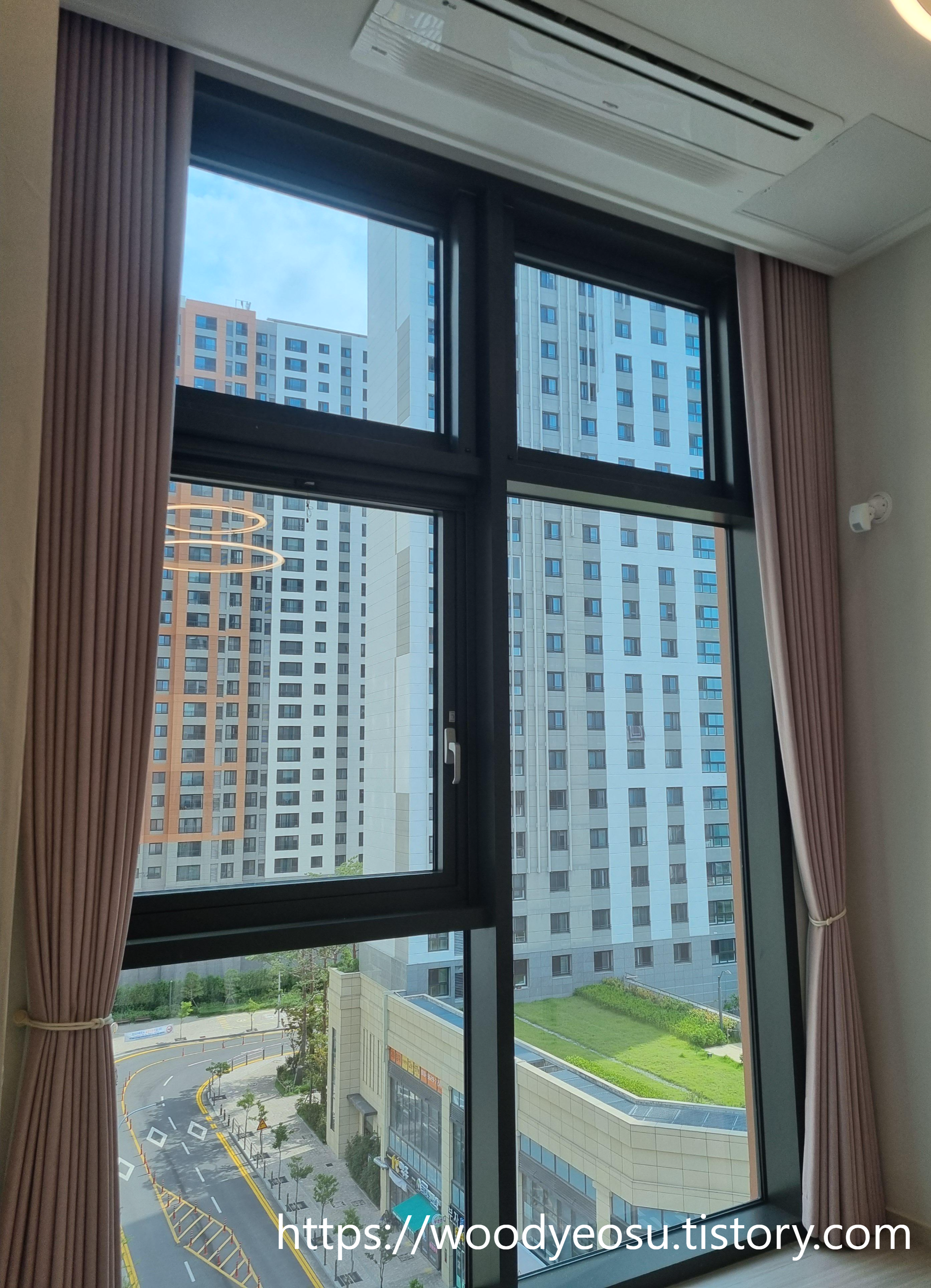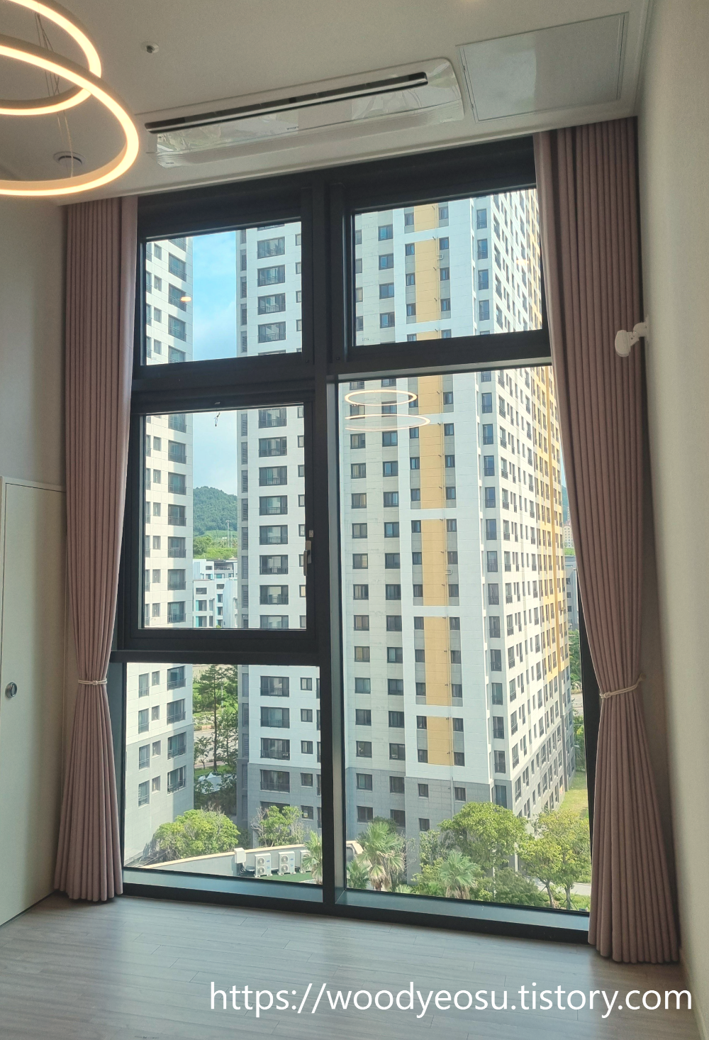 여수 웅천 롯데캐슬마리나 오피스텔 복층 세미암막형상커튼 설치