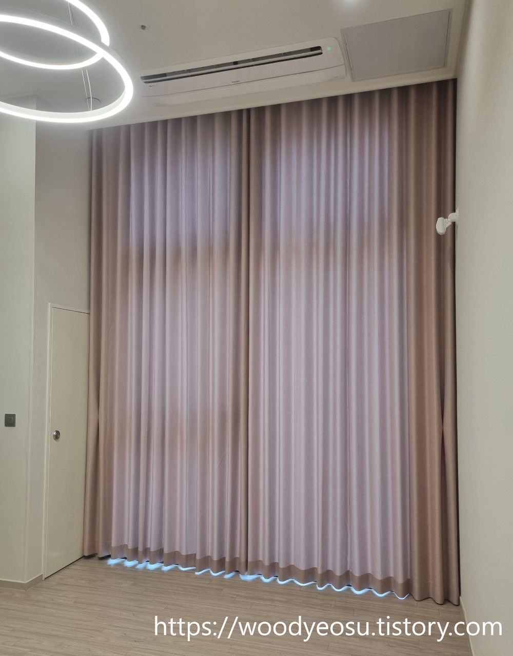 형상가공한 커튼으로 복층이기때문에 드레이퍼리가 더 예쁩니다~