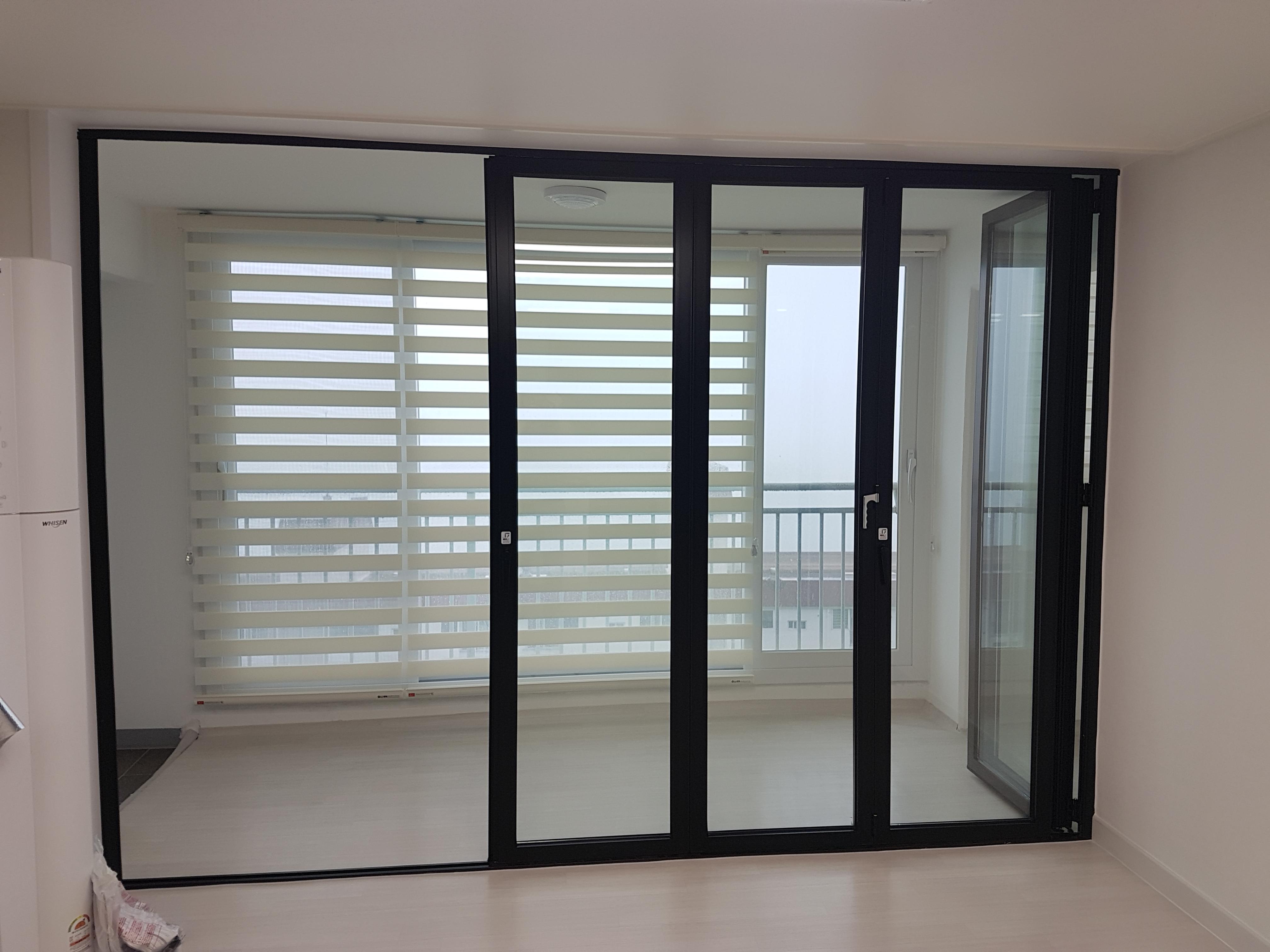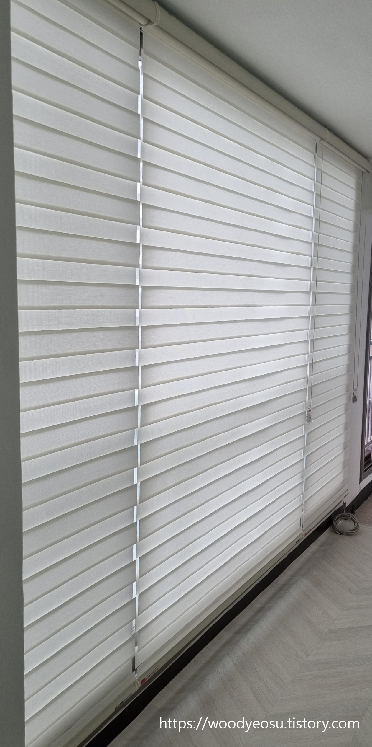 베란다에 화이트 콤비블라인드 시공한 사진입니다.