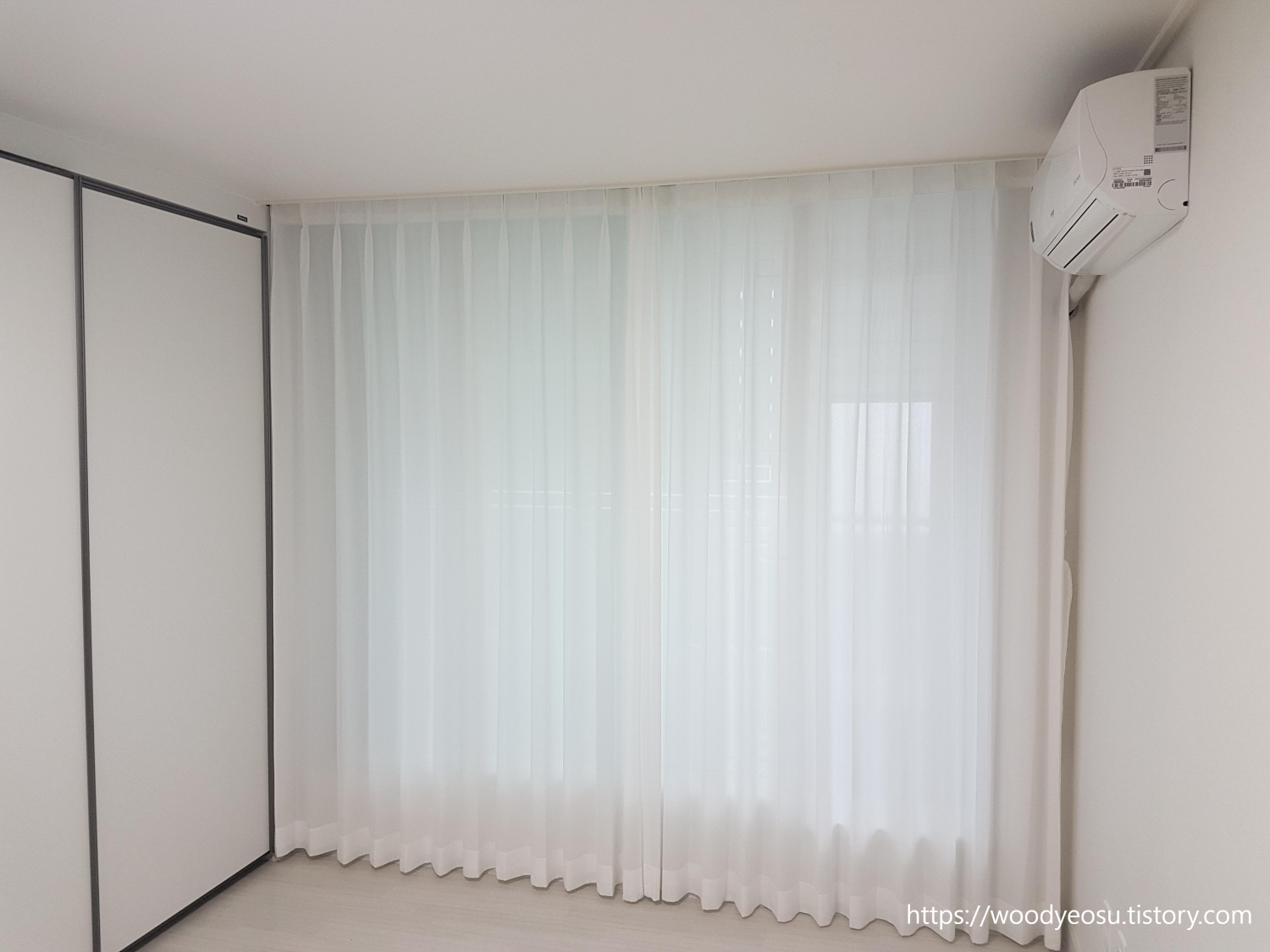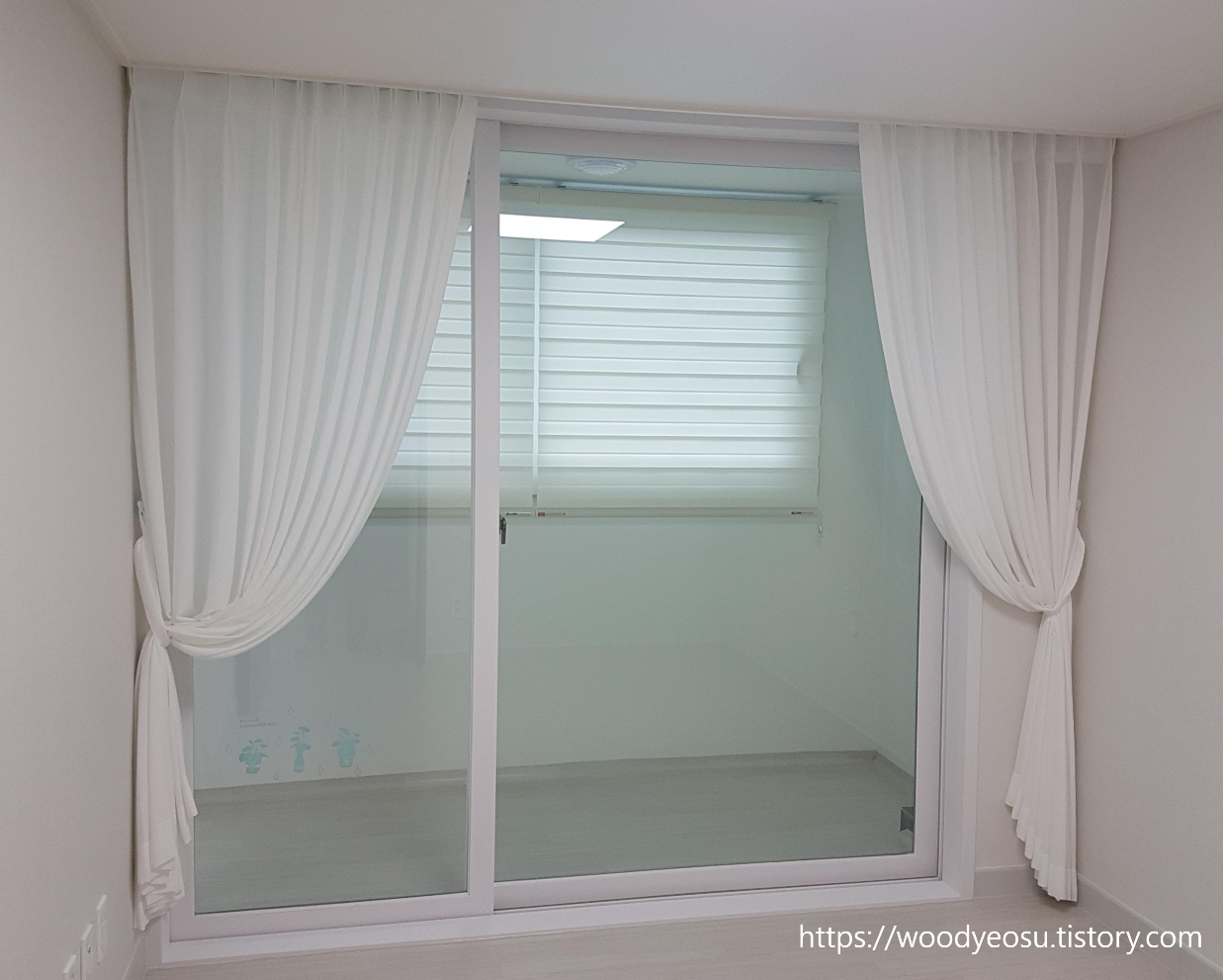 입구방에도 거실과 같은 느낌으로 커튼과 블라인드 함께 시공했습니다.