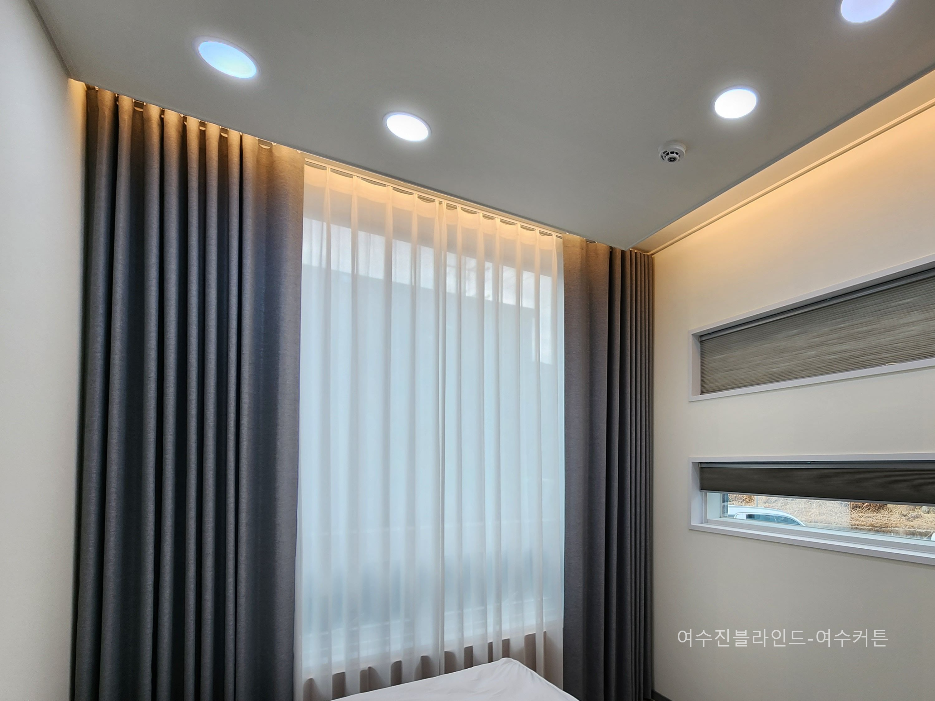 입구쪽 작은창에 설치한 허니콤블라인드도 역시 방염제품입니다.