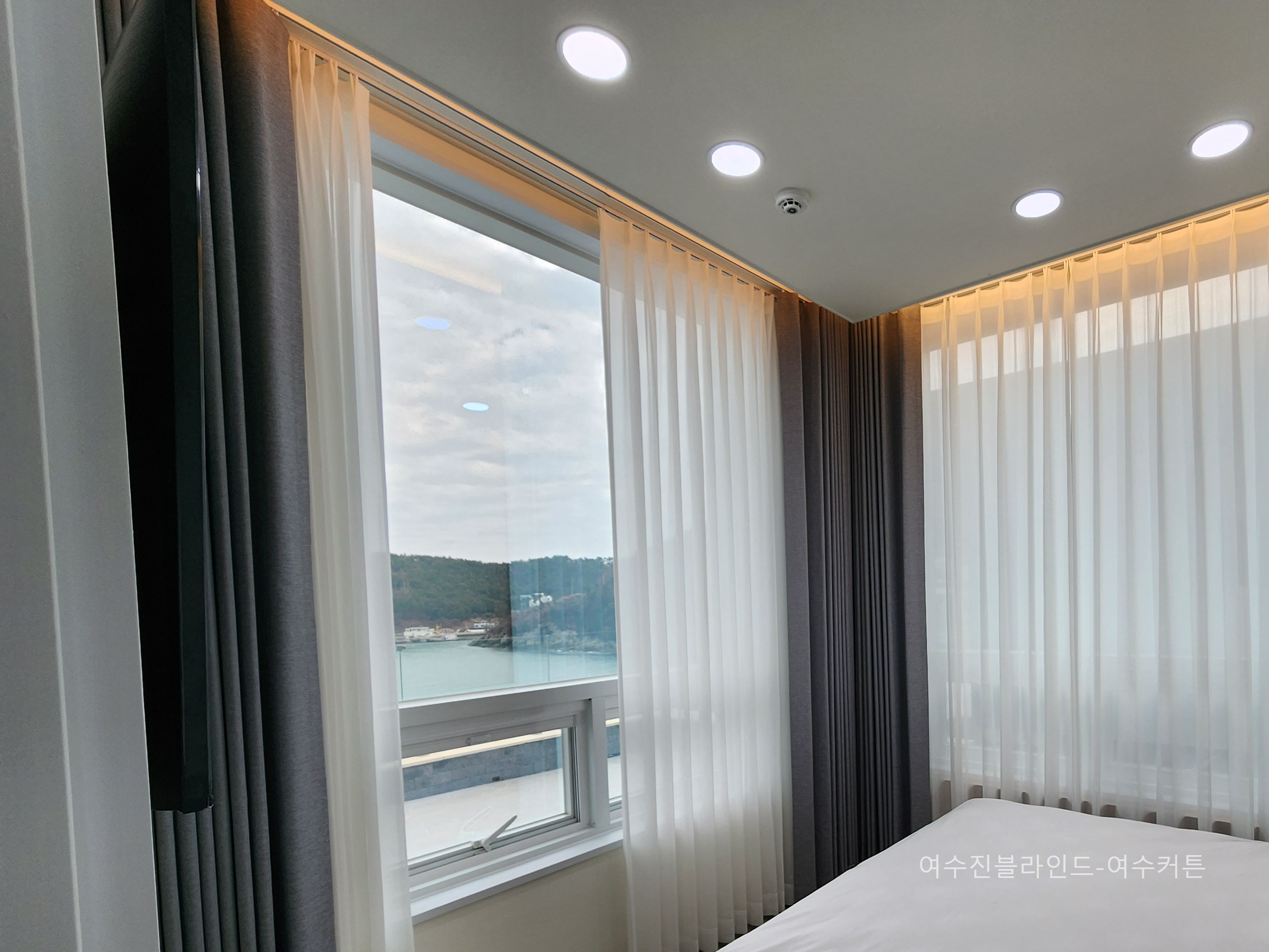 커튼 시공후 커튼사이로 보이는 바다~~