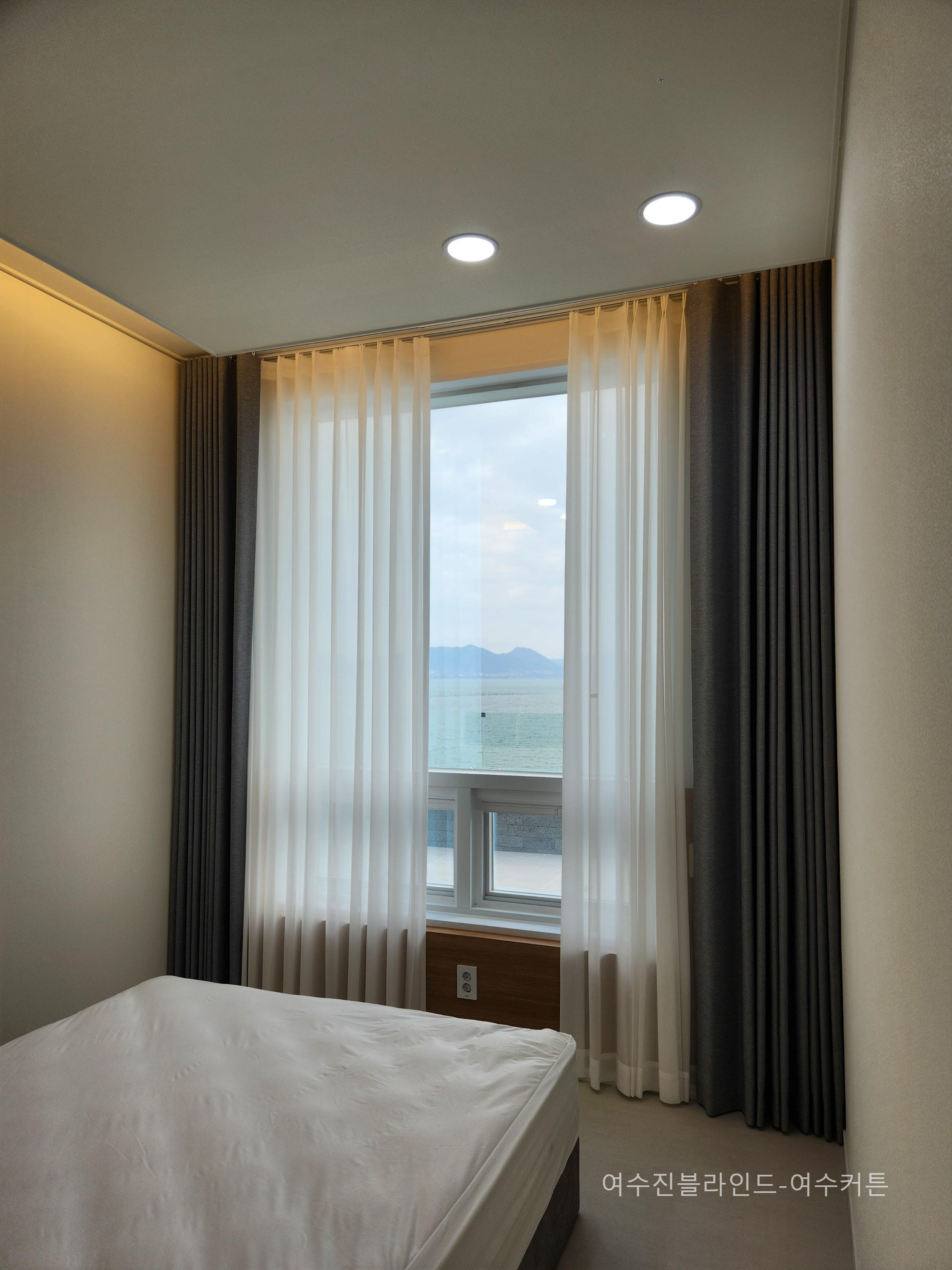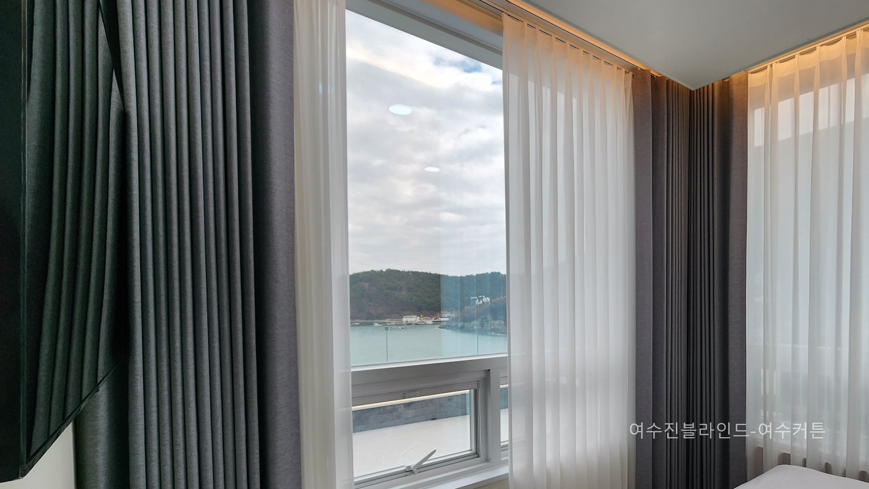 커튼 시공후 커튼사이로 보이는 바다~~
