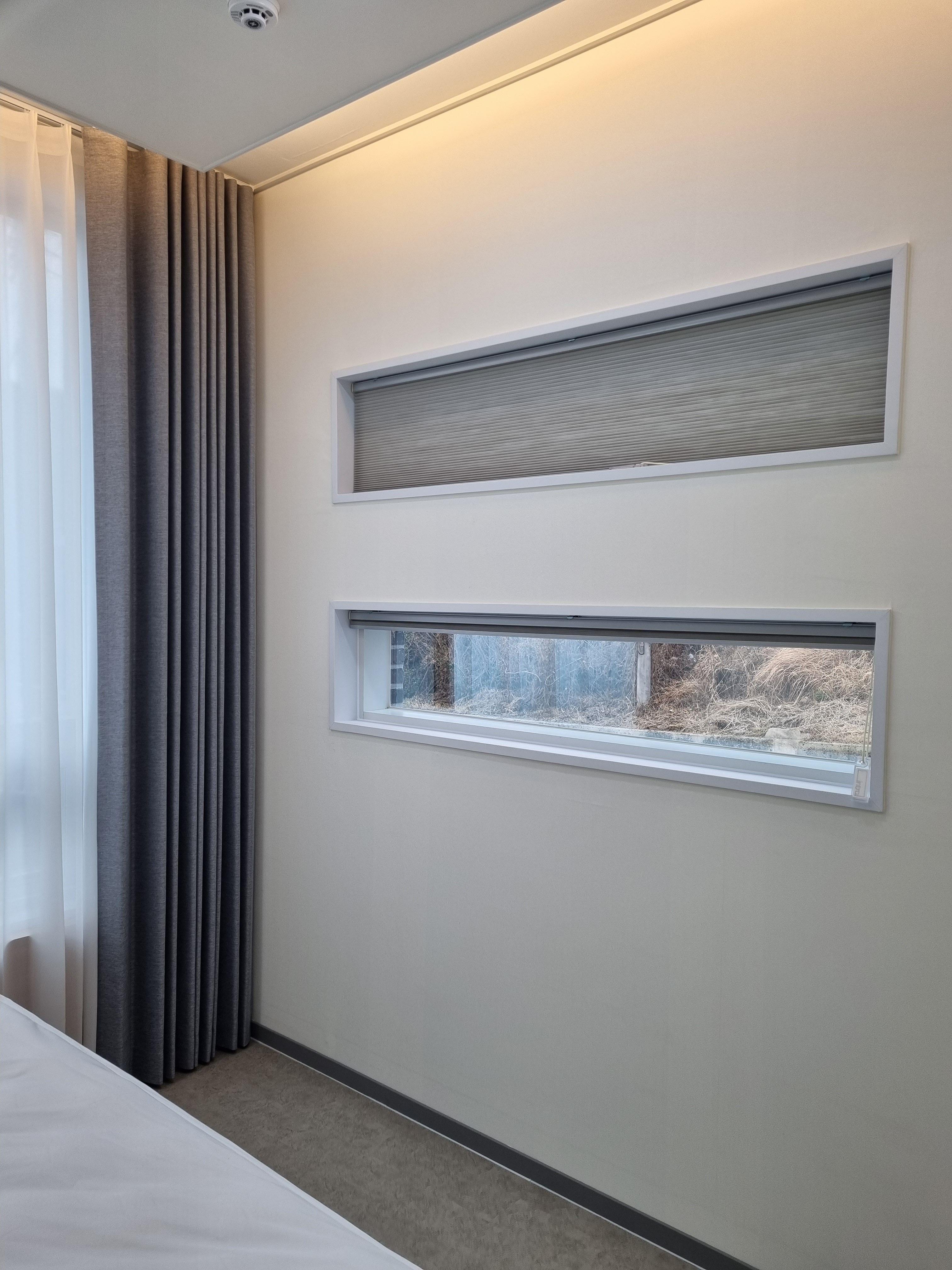 허니콤블라인드가 설치된 작은창은