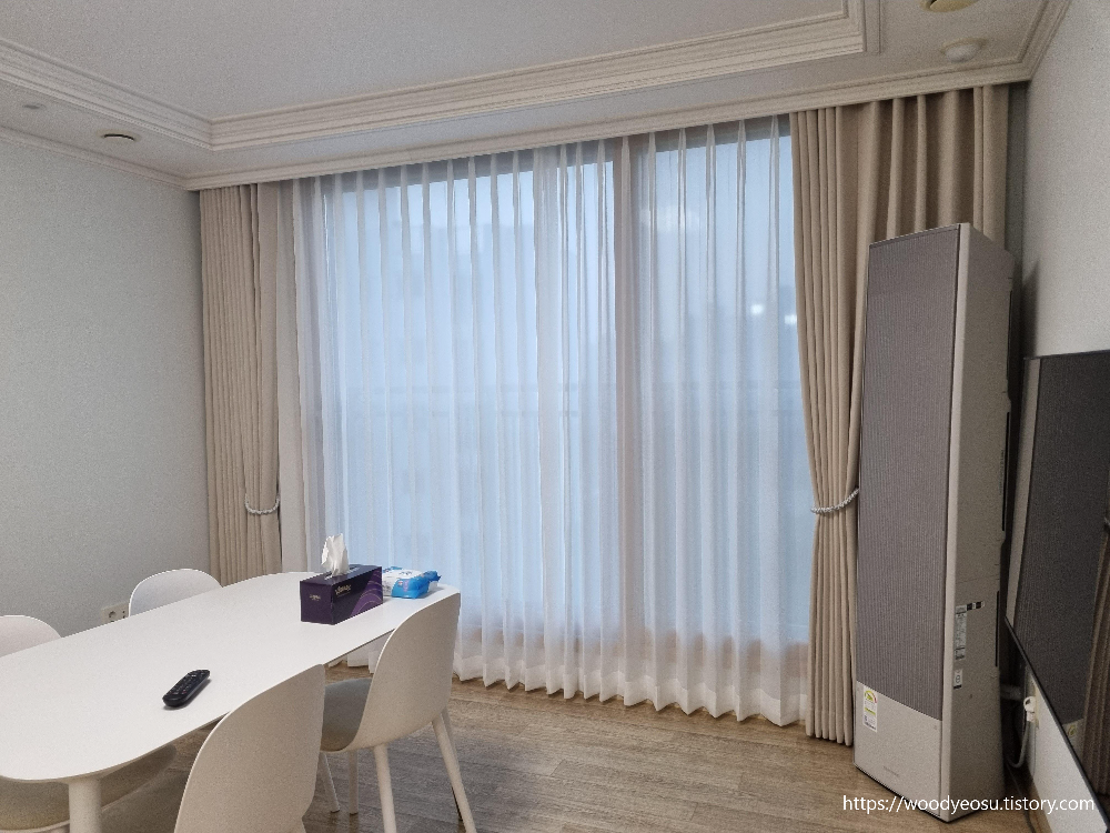 여수엑스포힐스테이트2차 거실은 베이직한 느낌의 커튼으로 마무리 하였답니다.