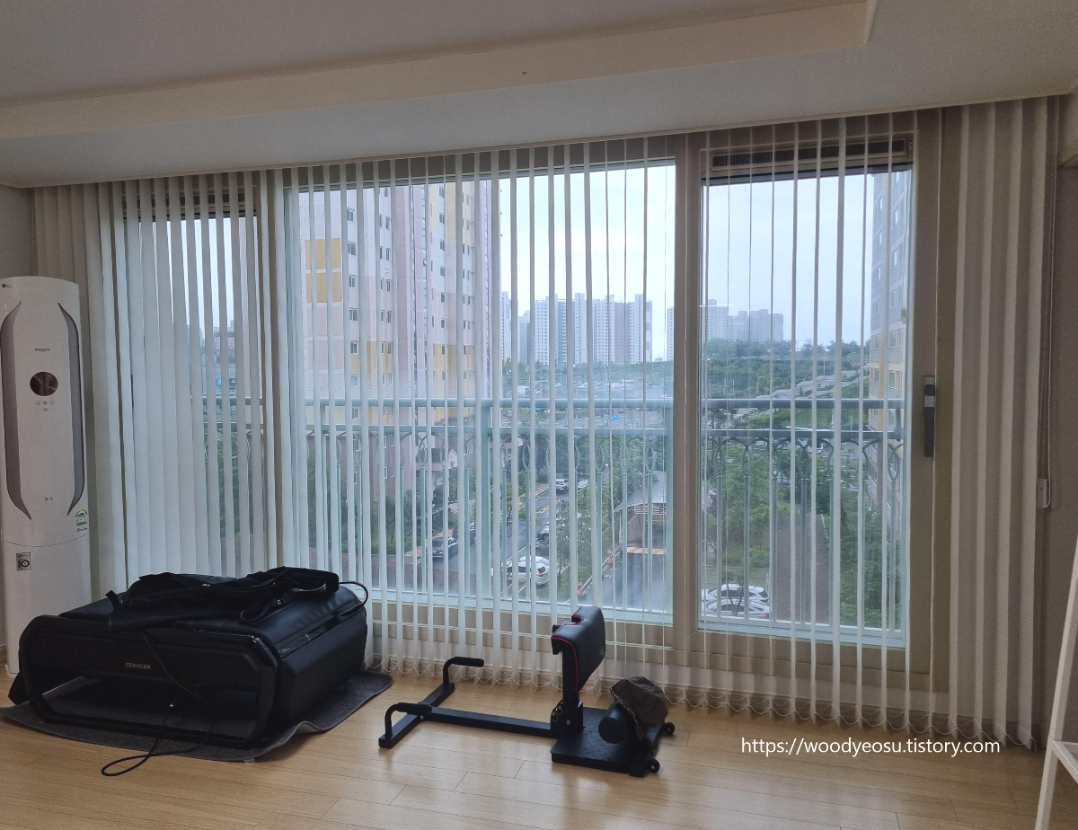 버티컬블라인드 장점:일반적인 블라인드 가격과 비슷하여 부담이 적다(스마트커튼은 버티컬블라인드의  3-4배정도 가격)