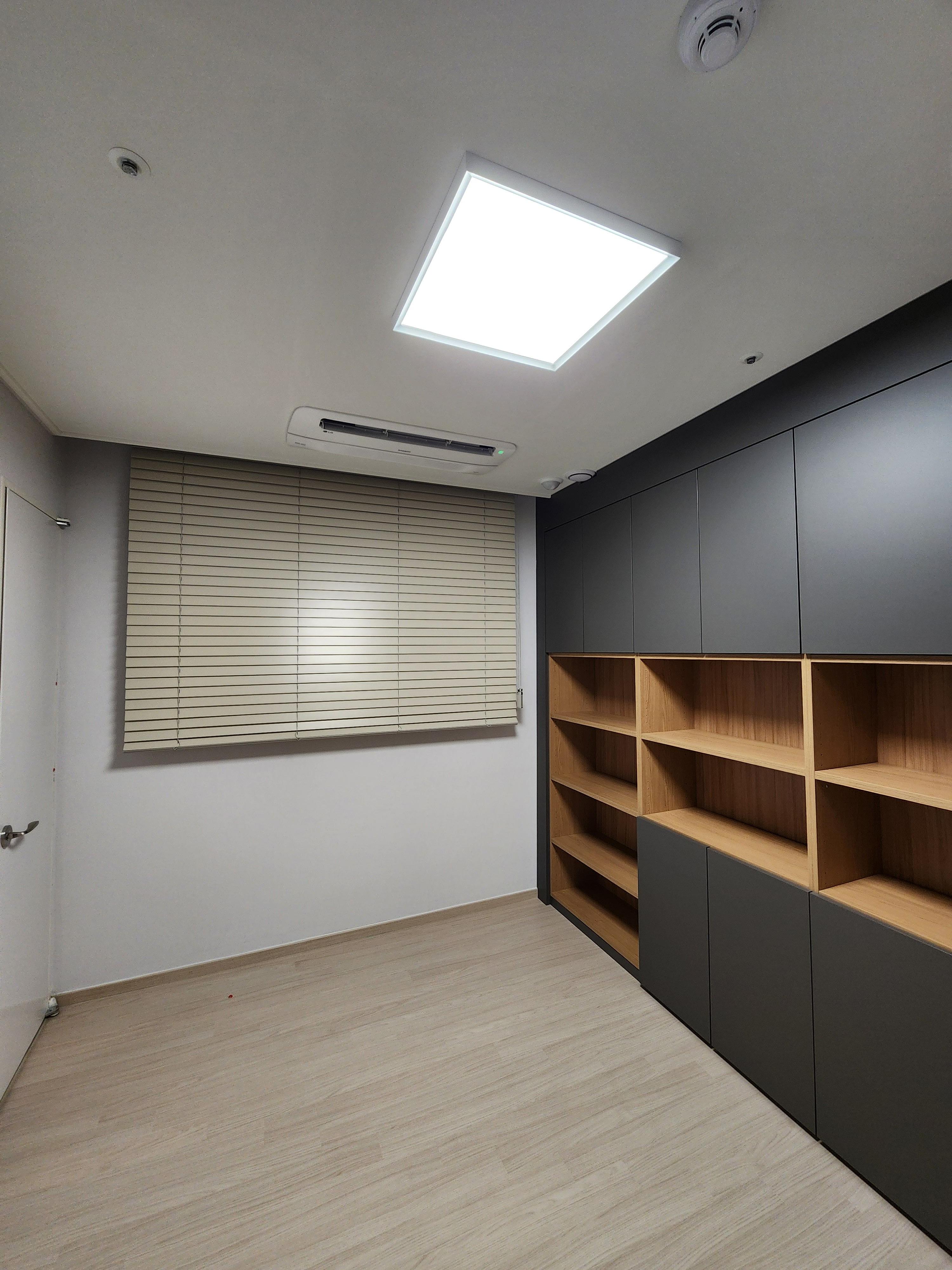 무지커튼으로 깔끔하게 시공해 드렸습니다.