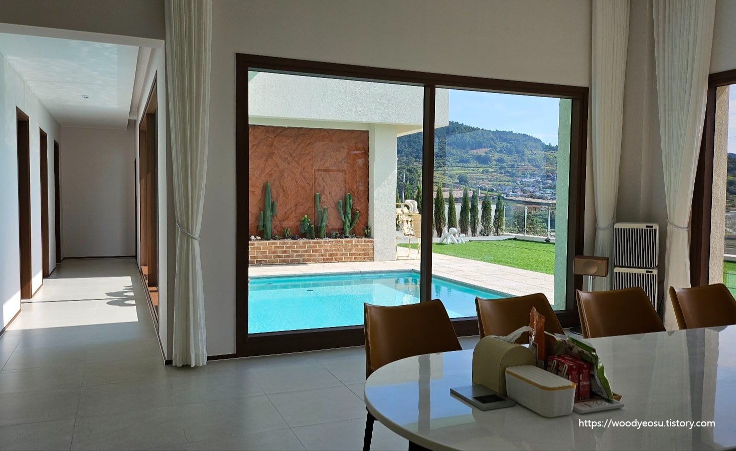 저희가 커튼,블라인드 설치하러갔을때는 수영장 앞쪽에 선인장있는 부분 공사가 진행중이어서 예쁜 사진을 못 담았답니다.