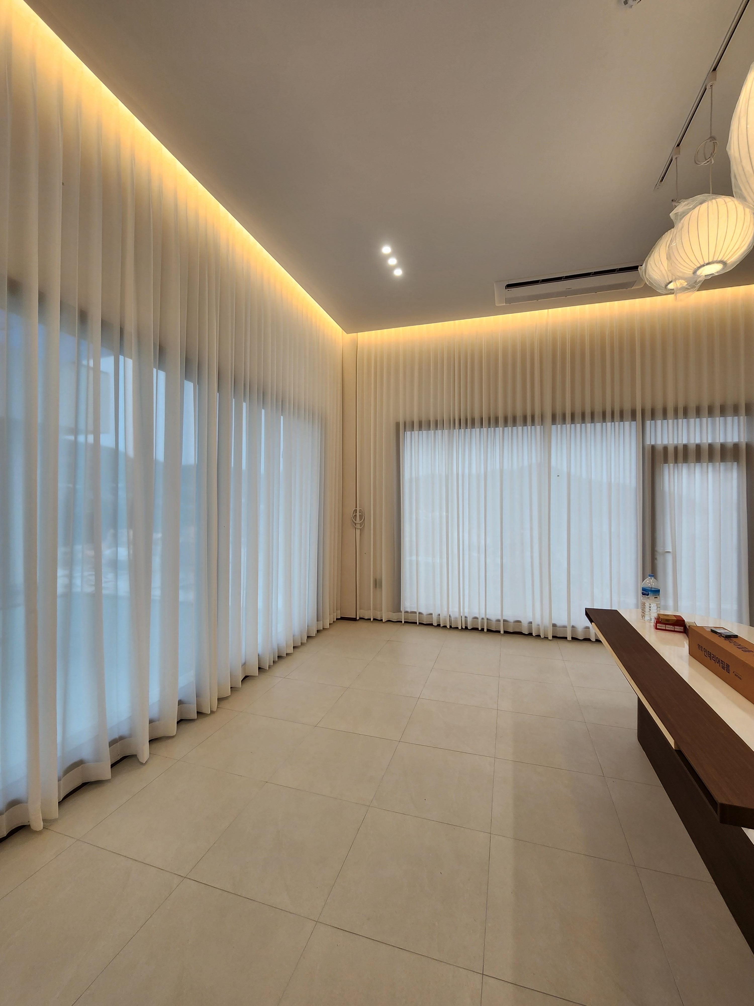 불에 타지 않도록 방염처리한 #방염도톰쉬폰커튼입니다~