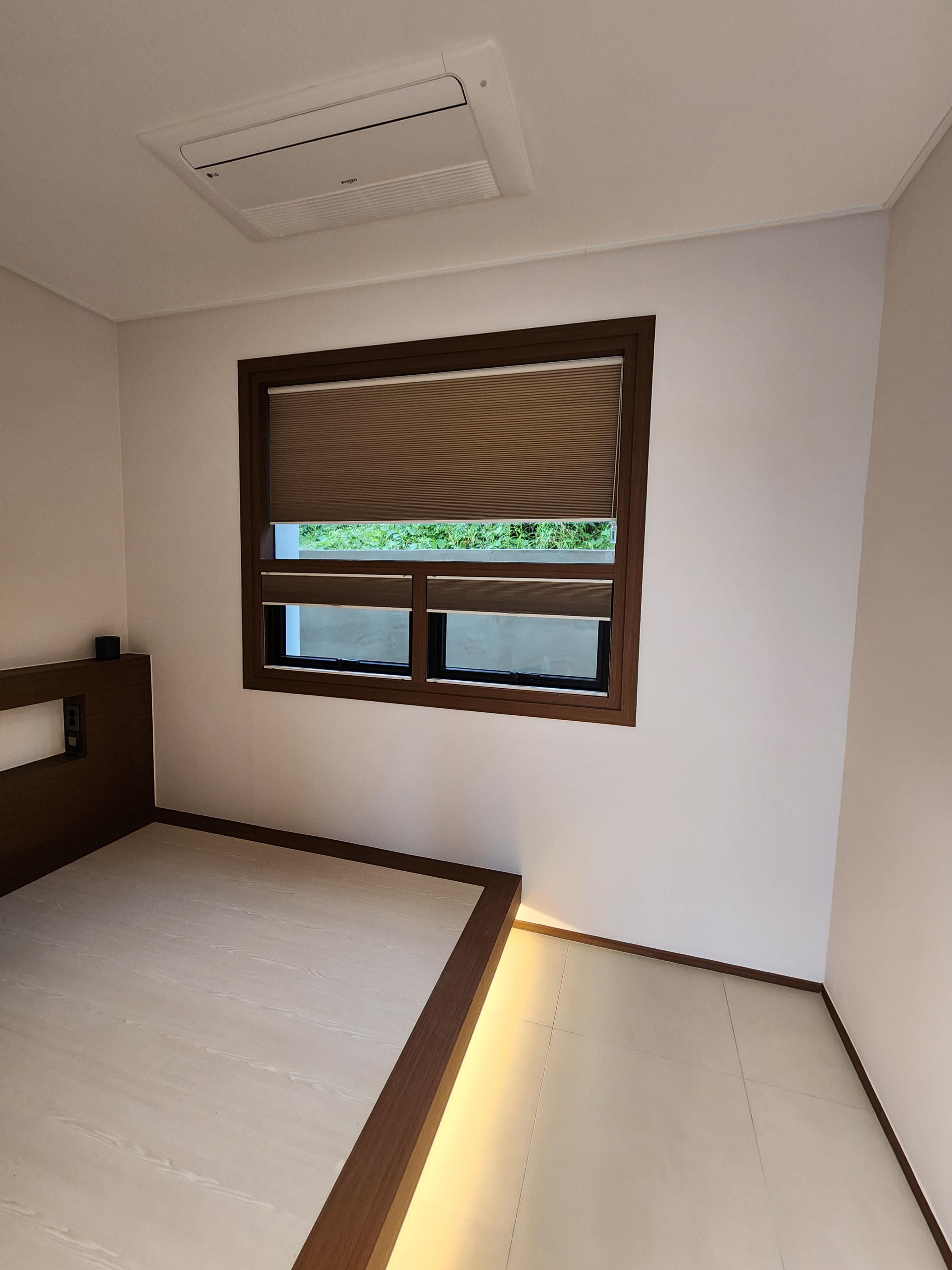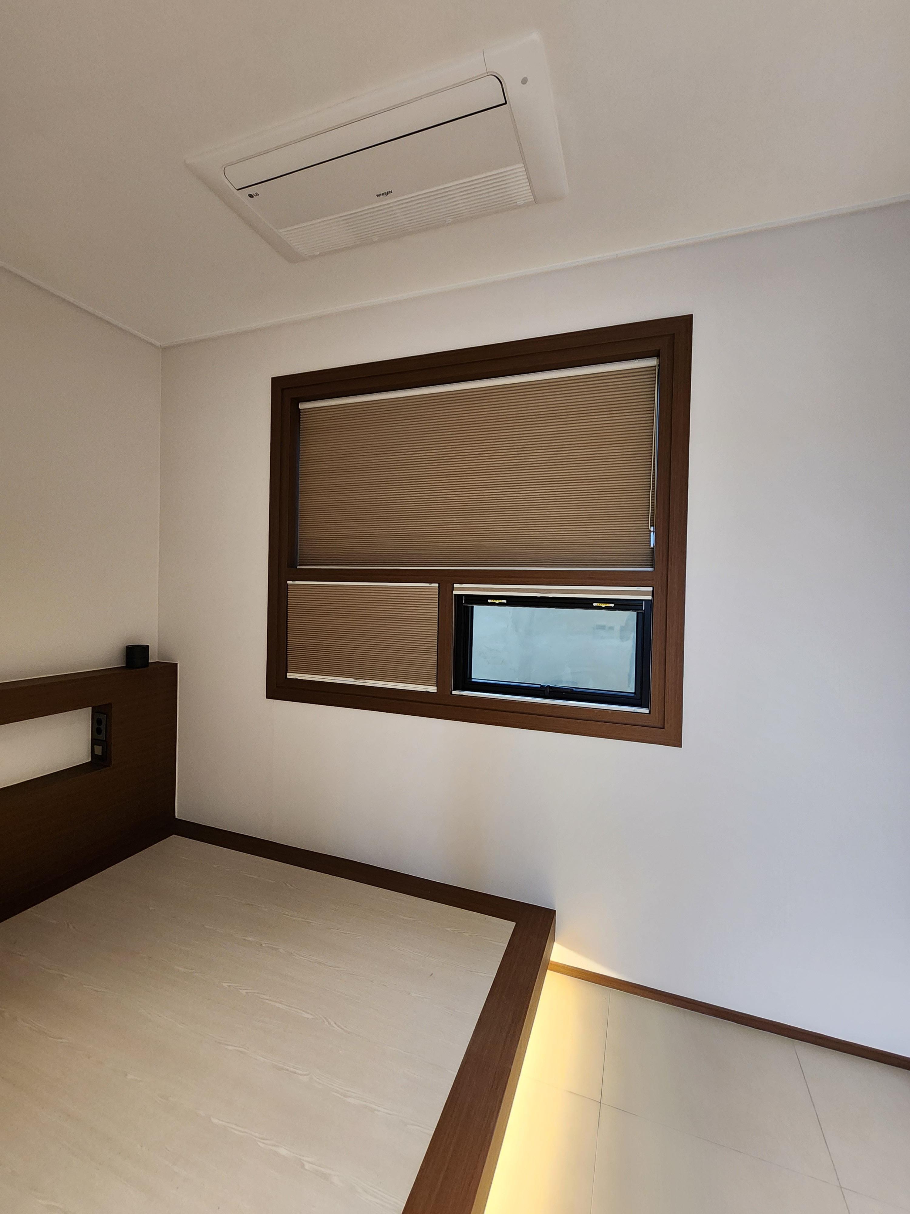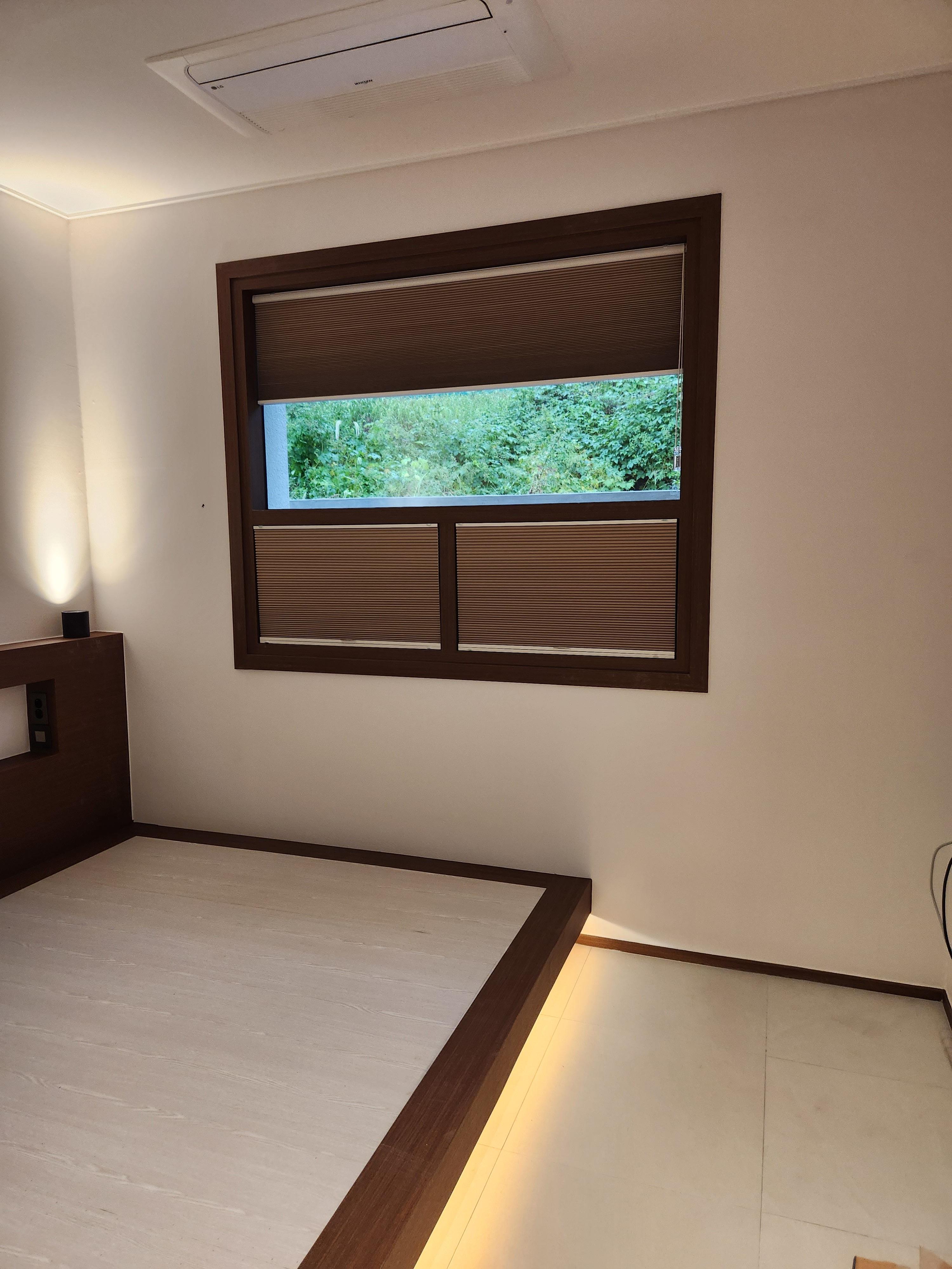 침실에 설치한 암막방염허니콤입니다.