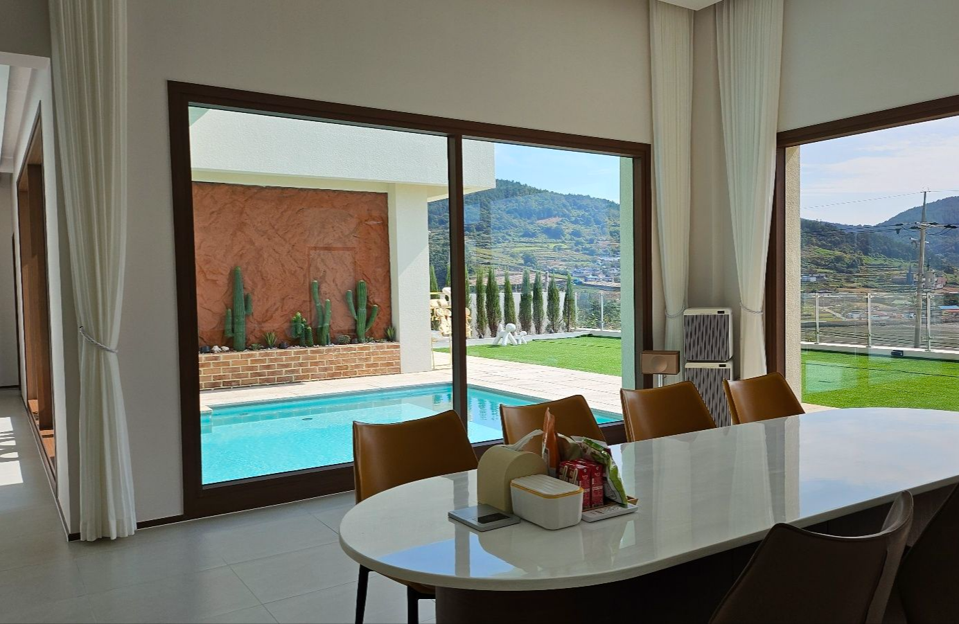 저희가 커튼,블라인드 설치하러갔을때는 수영장 앞쪽에 선인장있는 부분 공사가 진행중이어서 예쁜 사진을 못 담았답니다.