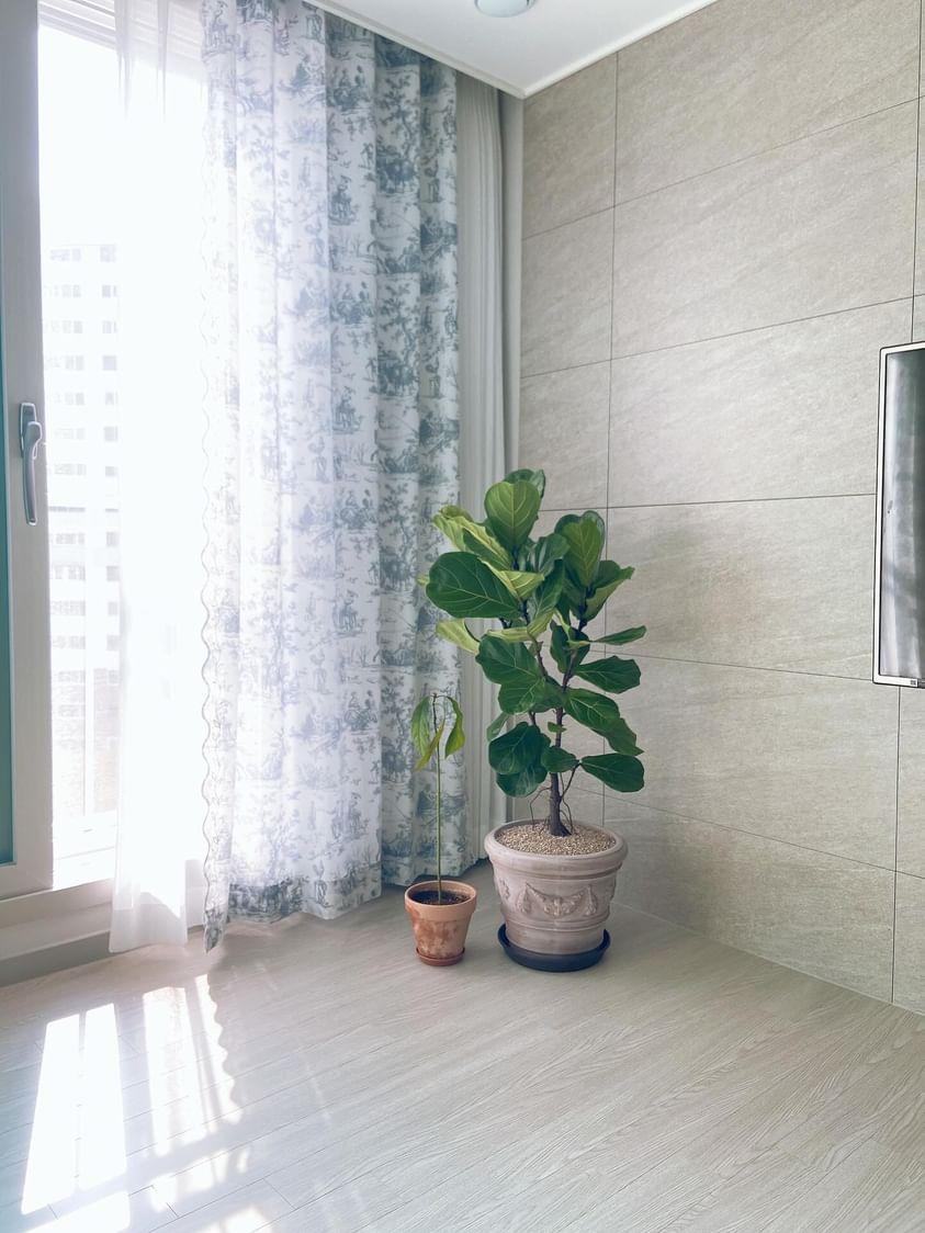커튼 사이로 들어오는 따스한 햇살과 초록이....