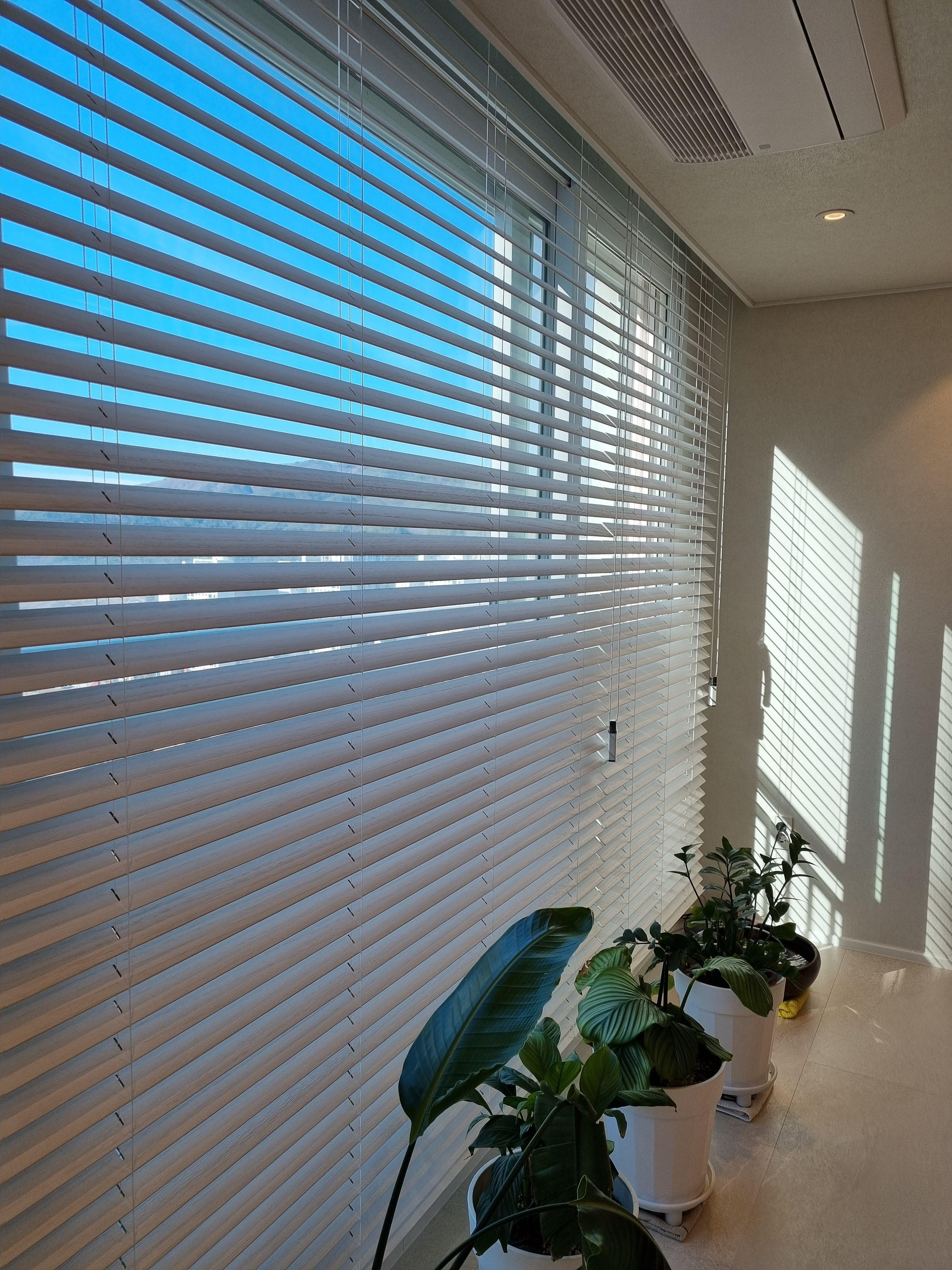 우드블라인드는 슬랫의 방향에 따라 햇빛의 방향과 양을 을 조절할수 있답니다.