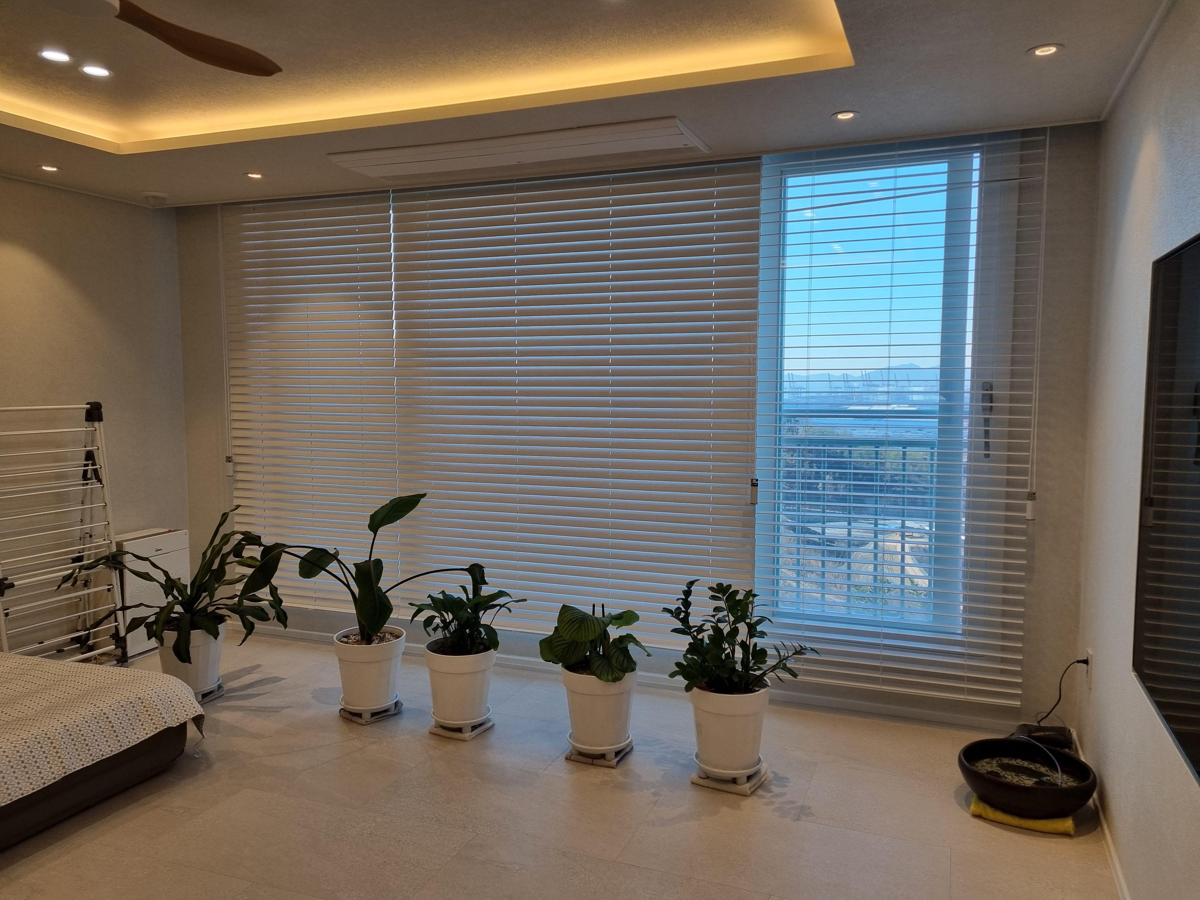 화이트우드블라인드와 초록이들 너무 예쁩니다.