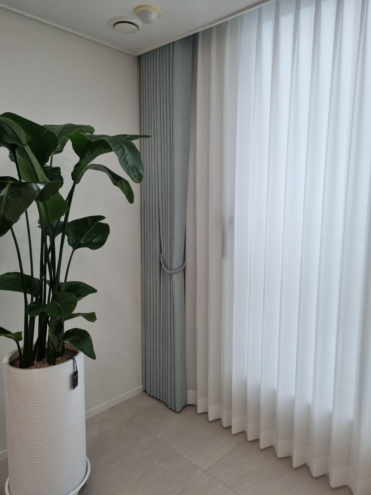 화이트쉬폰커튼과 민트색상의 커튼 조합~~~