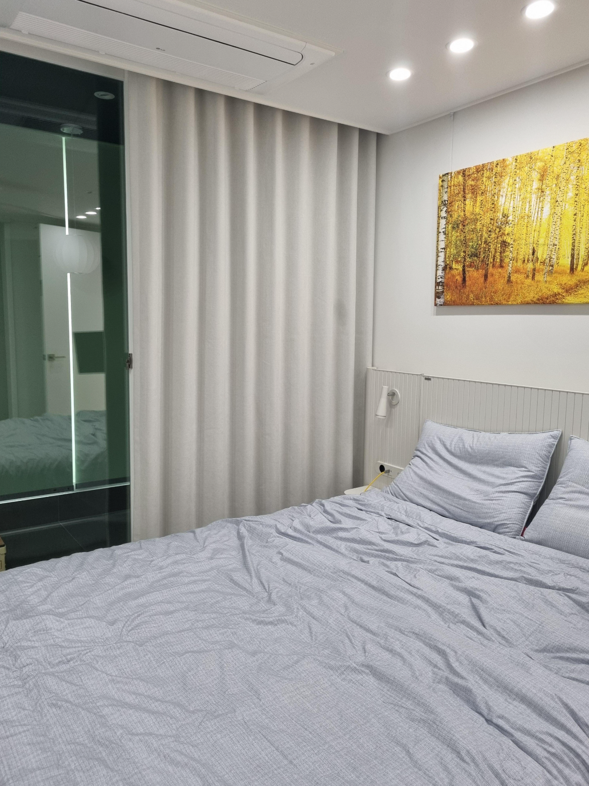 베이직한 느낌으로 심플하면서도 깔끔하게 커튼 설치해 드렸답니다.