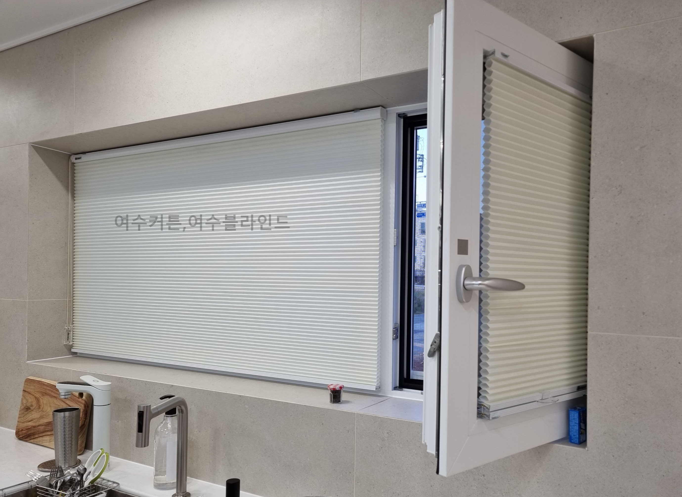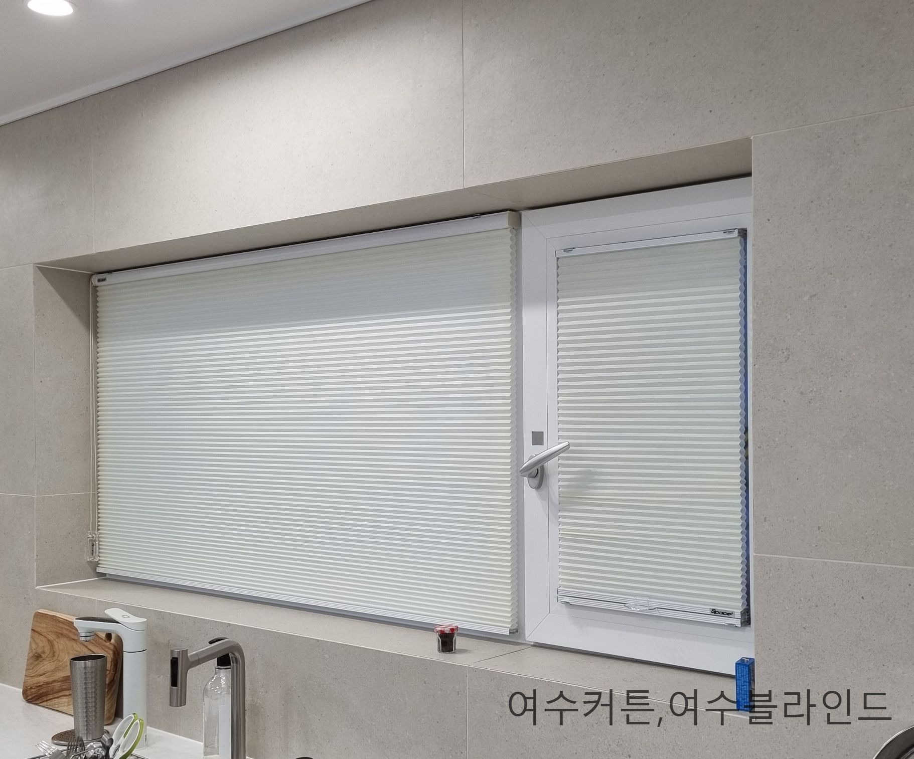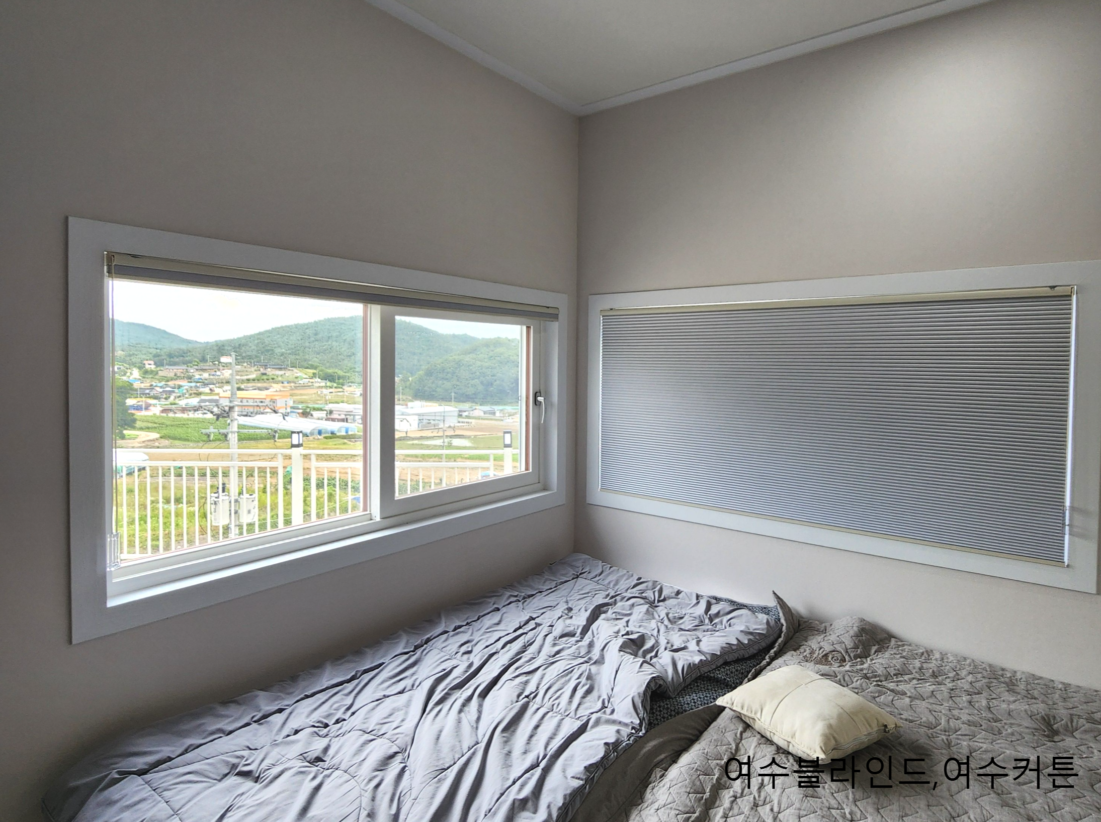 왼쪽은 고정형 창문이라 원코드(하나의 줄로 내리고 올리는 방식:일반적인 블라인드 형식)방식입니다.