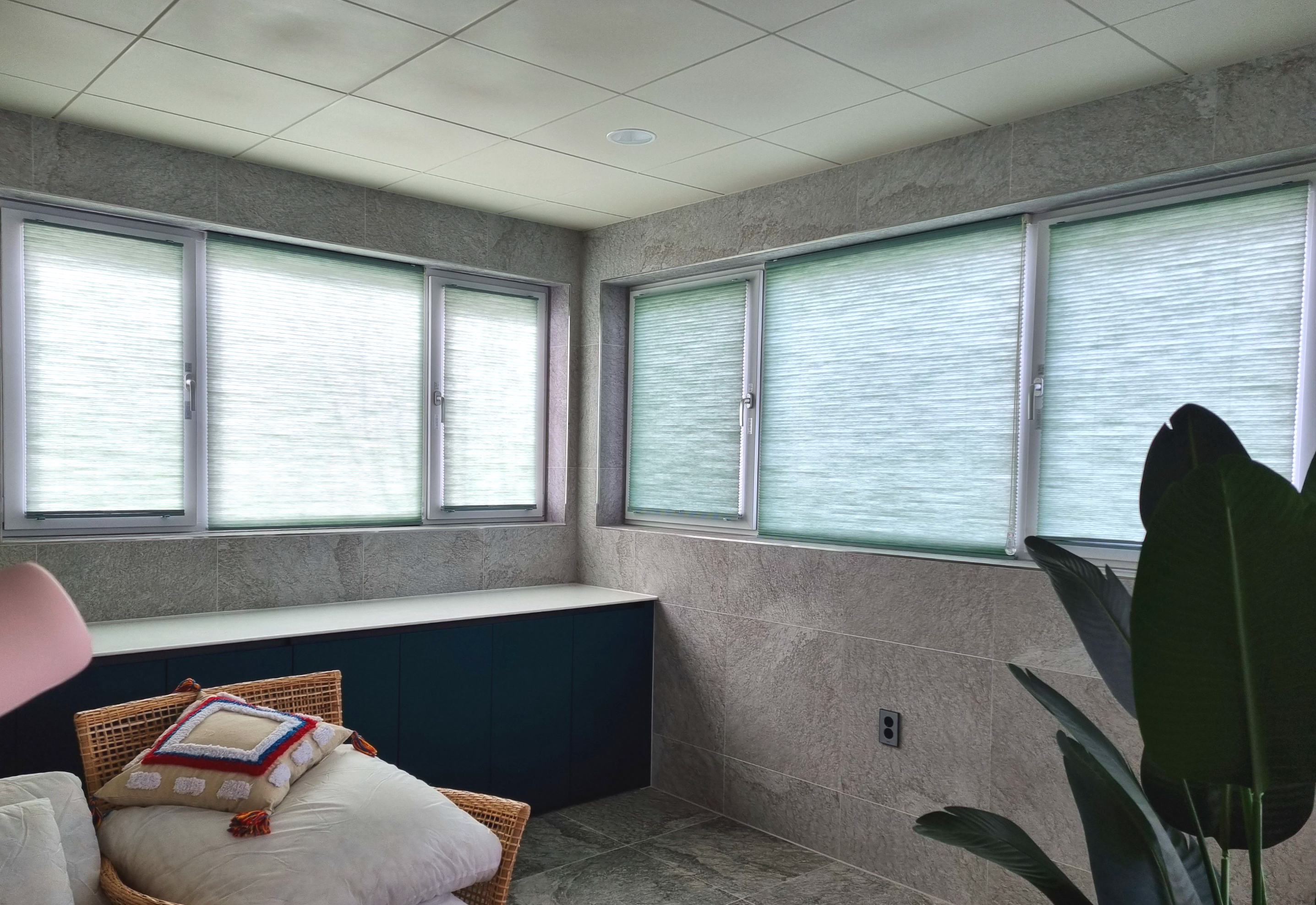 허니콤블라인드는 마름모모양의 공기층이 있어 일반적인 블라인드보다 조금더 아늑한 공간이 된답니다.