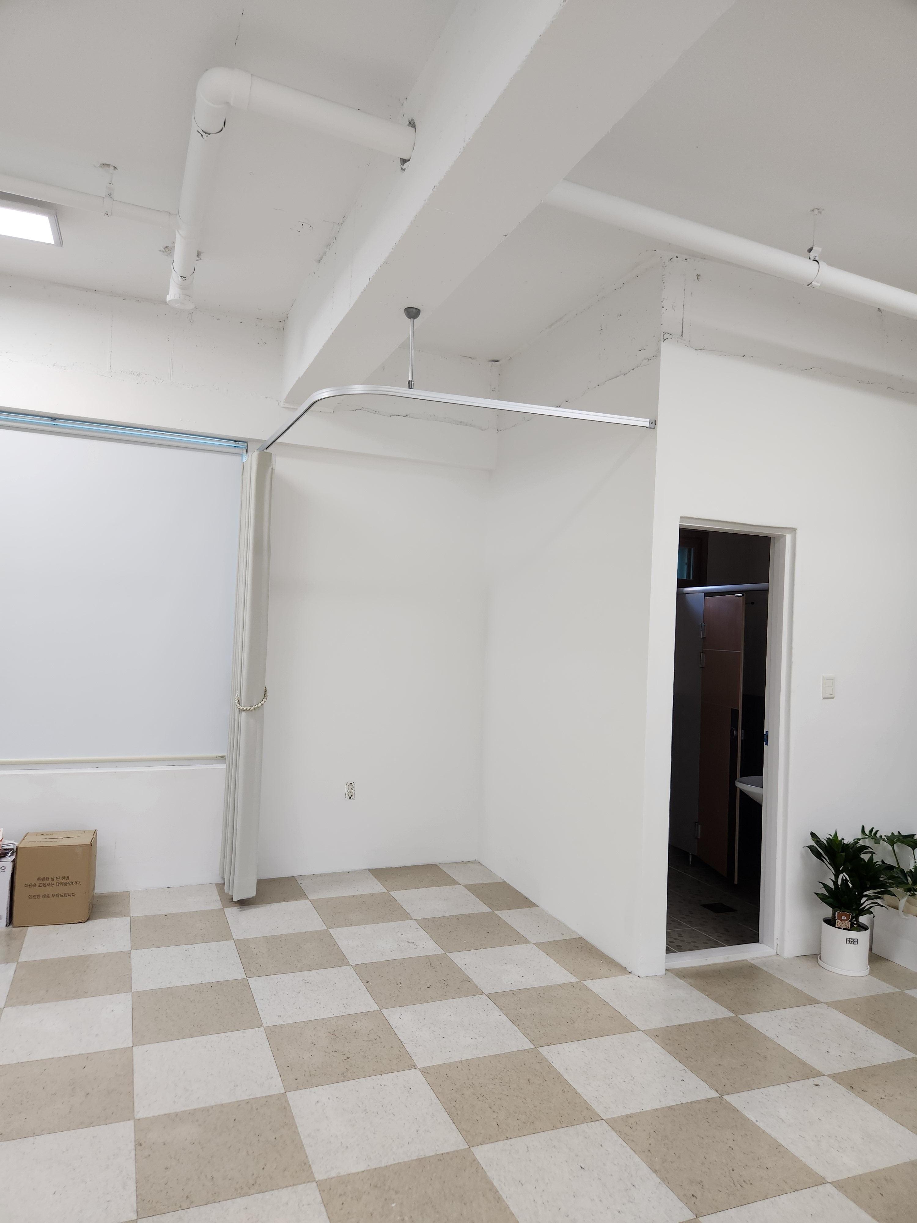 사진 촬영전 피팅룸에 설치한 커튼입니다.