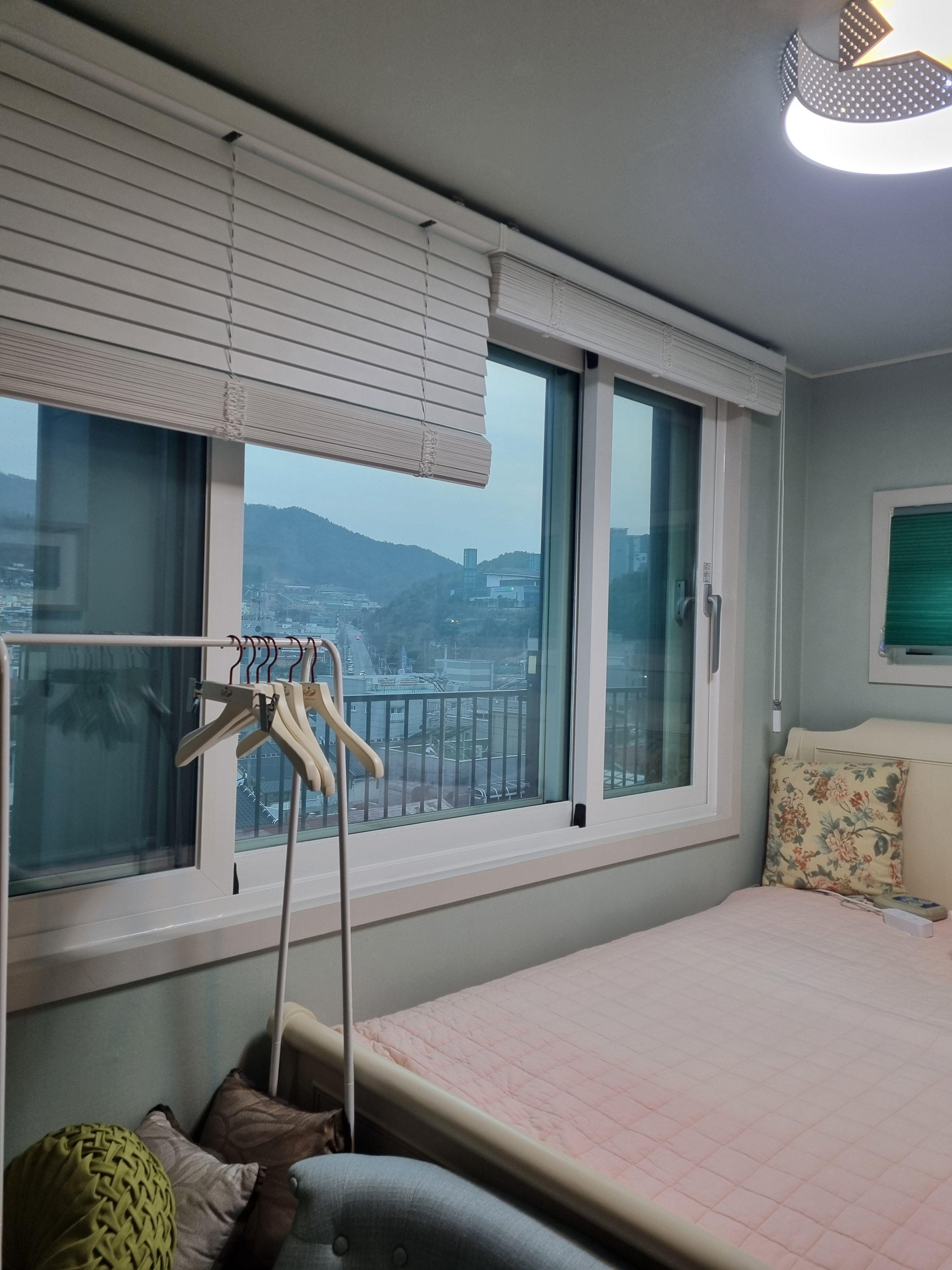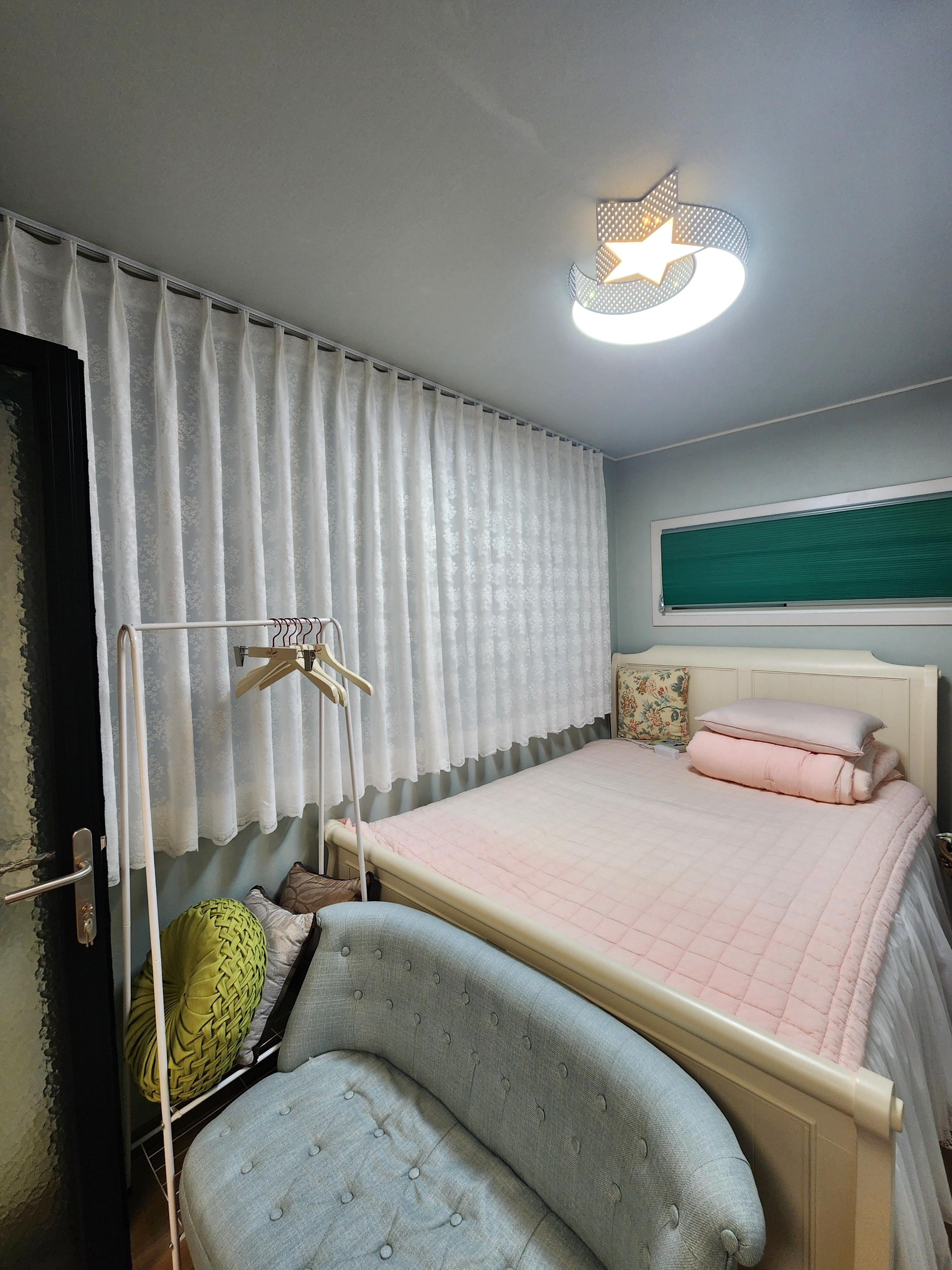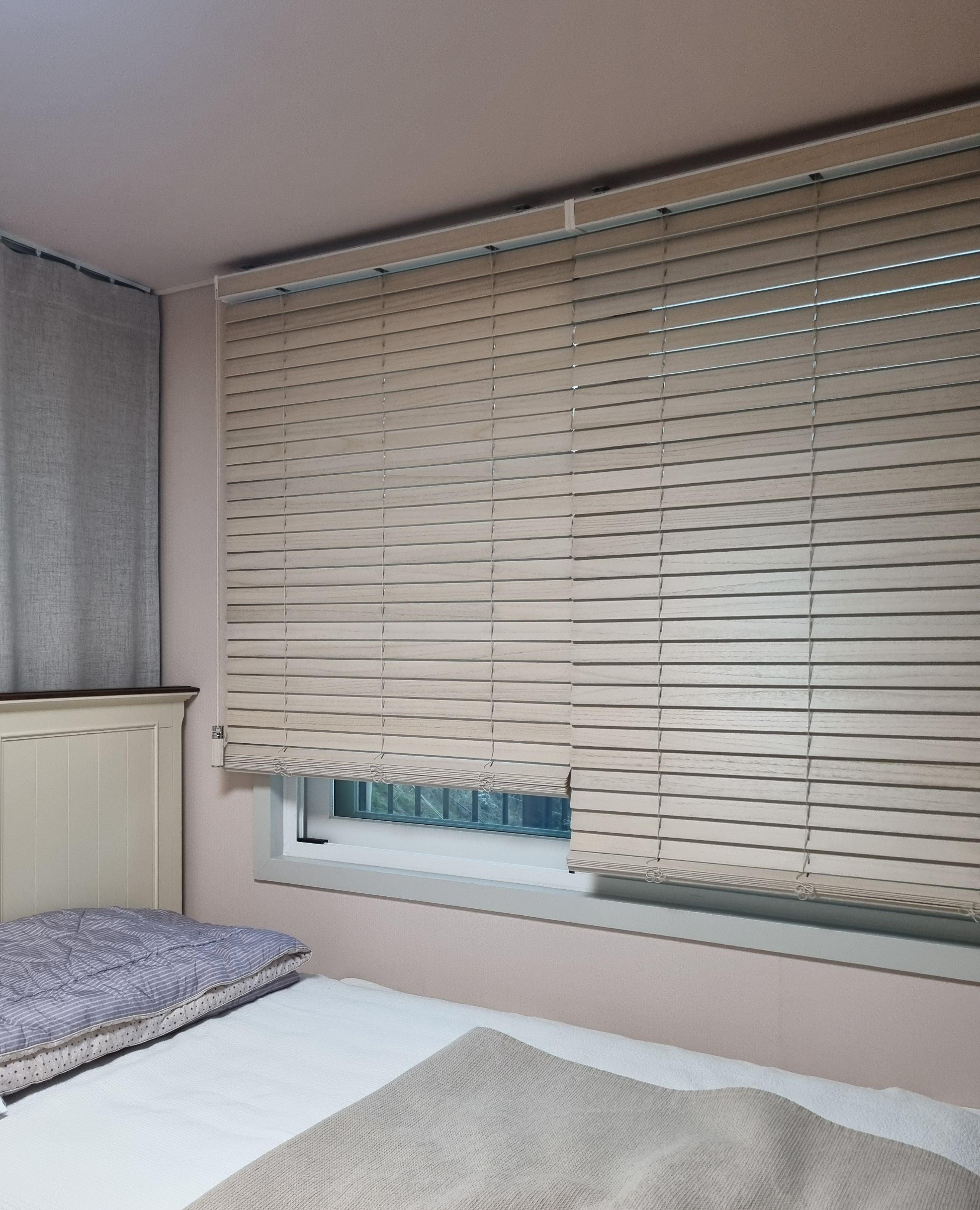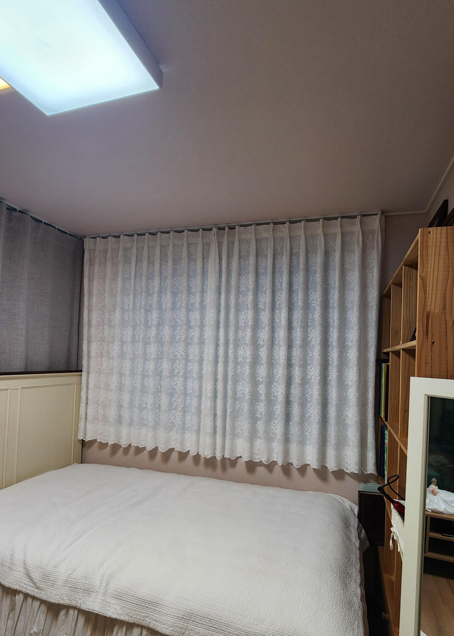 작은방은 우드블라인드에서 이중지 겹커튼으로 제작하여 설치해드렸습니다.