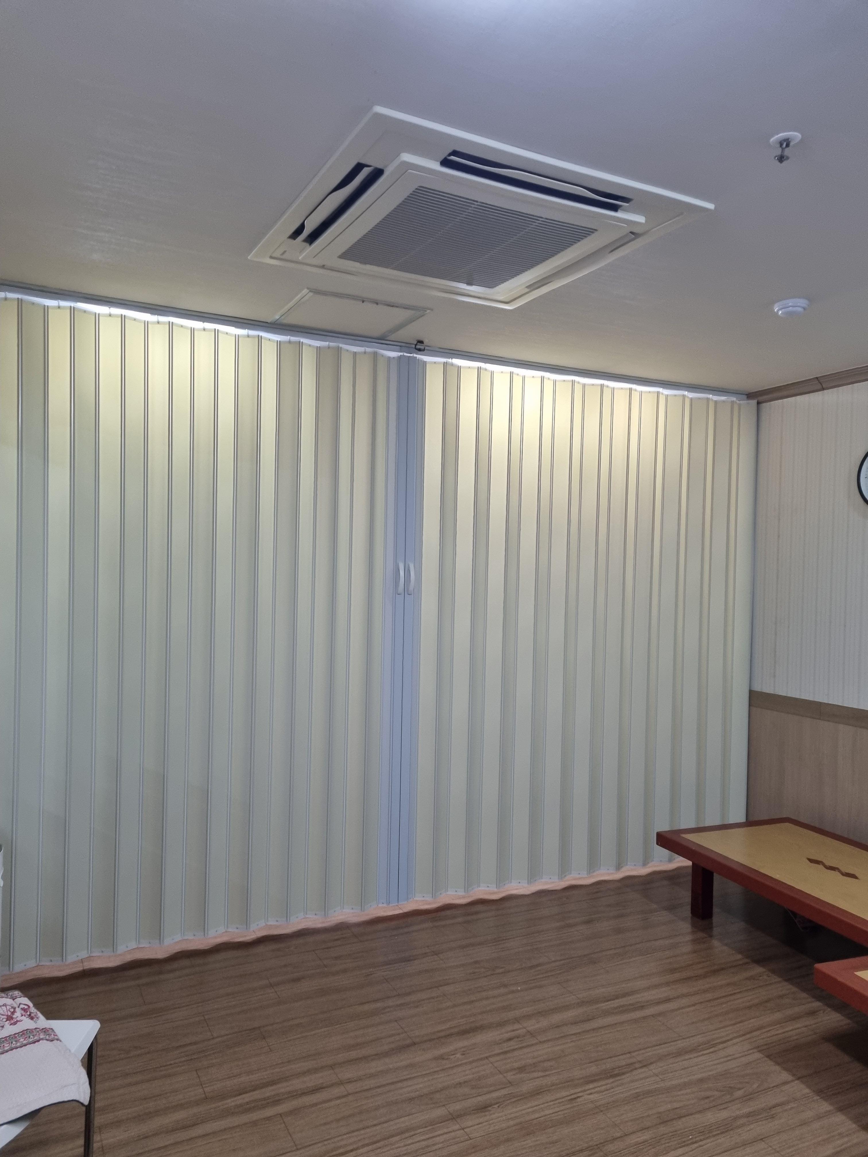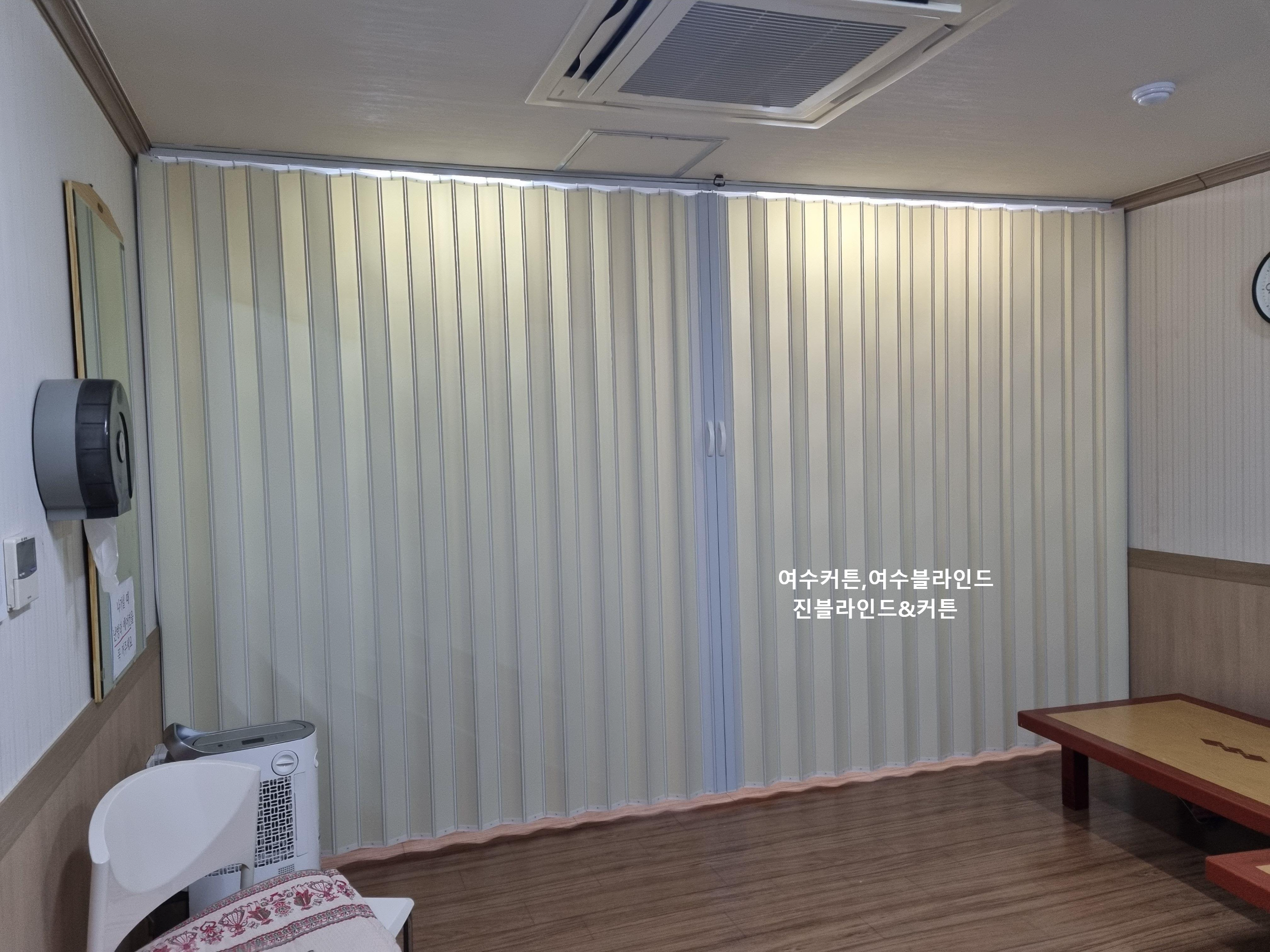 오늘은 여수교회에 설치한 홀딩도어(자바라)입니다.