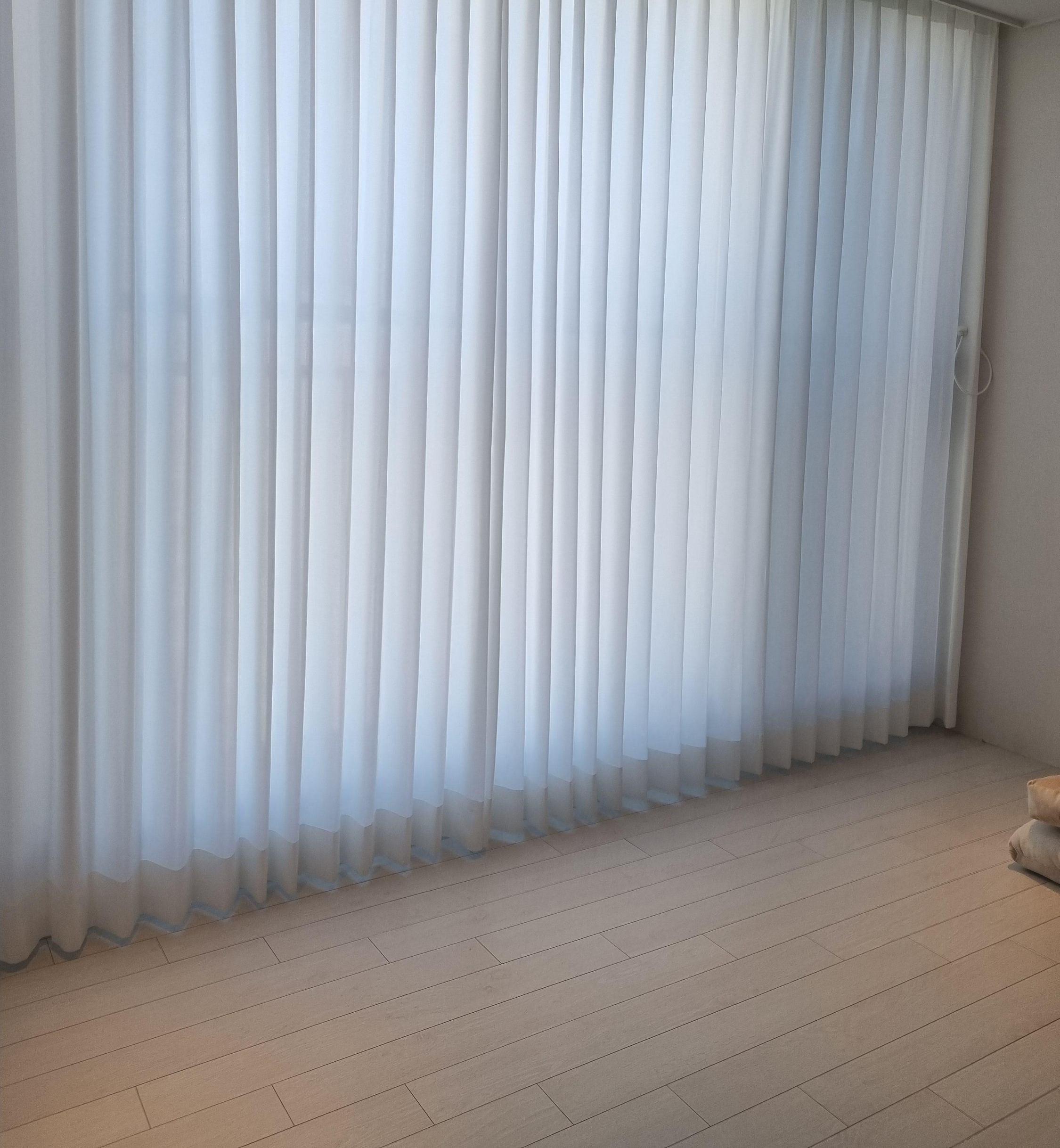 형상가공한 커튼은 아랫단부분도 일정하게 정돈되어 깔끔함이 두배입니다.