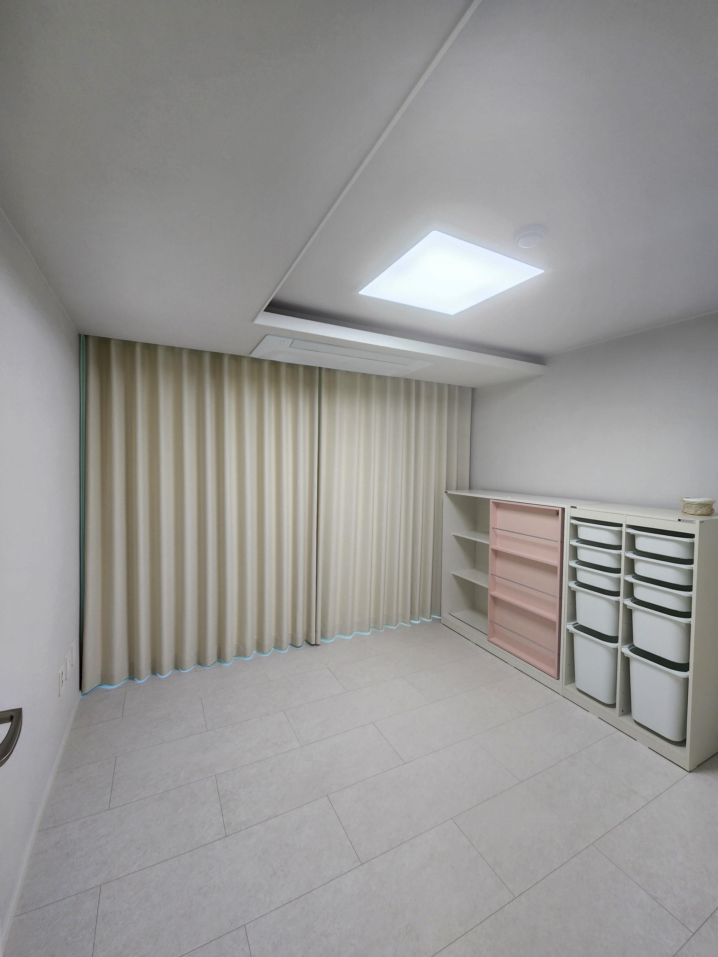 베란다 알류미늄 블라인드 설치전 커튼만 설치했을때 사진입니다.
