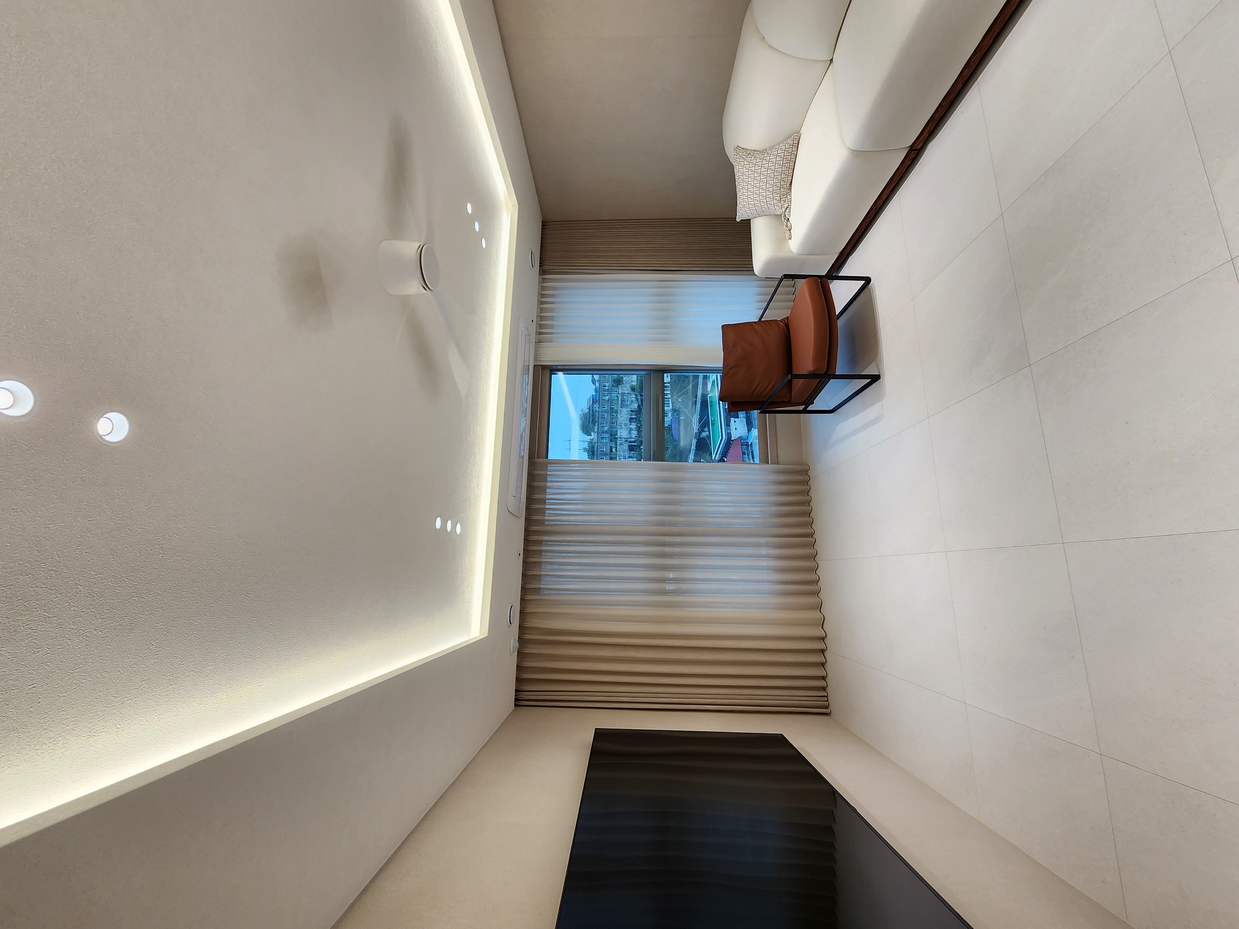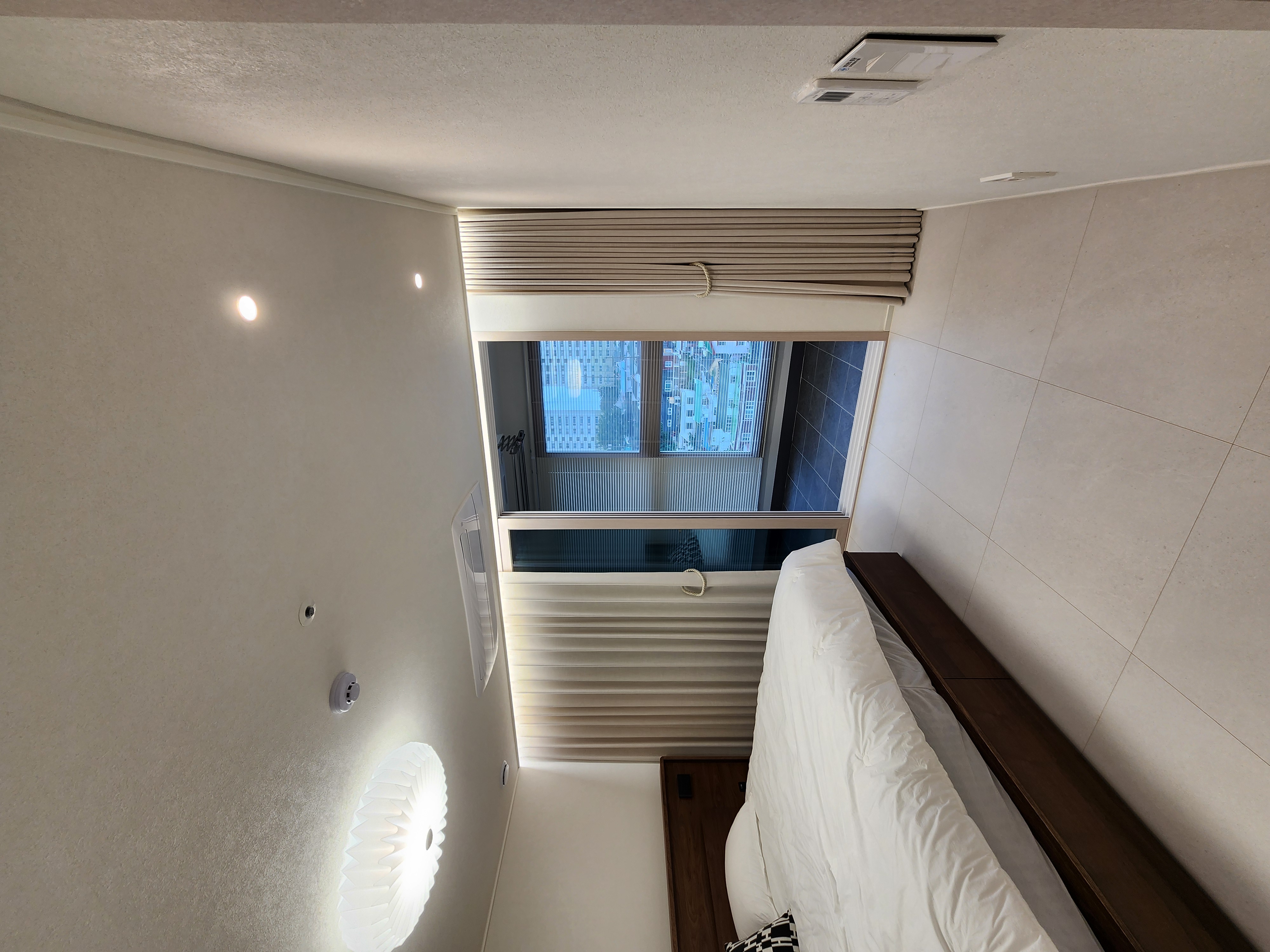 베란다쪽에 알류미늄블라인드 원코드형을 설치했기에 암막커튼은 달지 않았습니다.