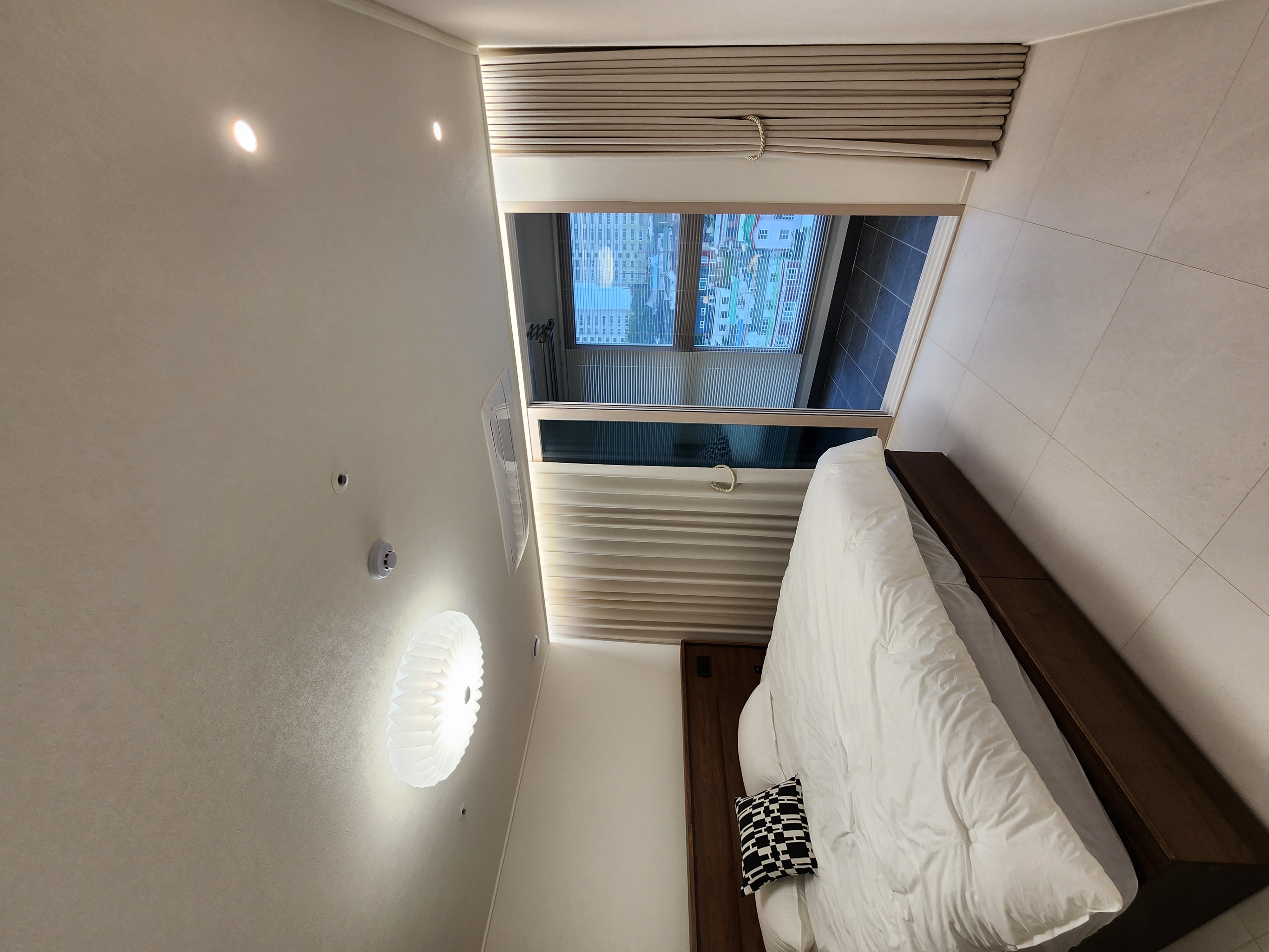 베란다쪽에 알류미늄블라인드 원코드형을 설치했기에 암막커튼은 달지 않았습니다.